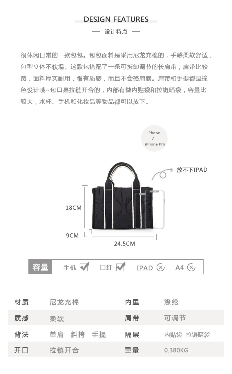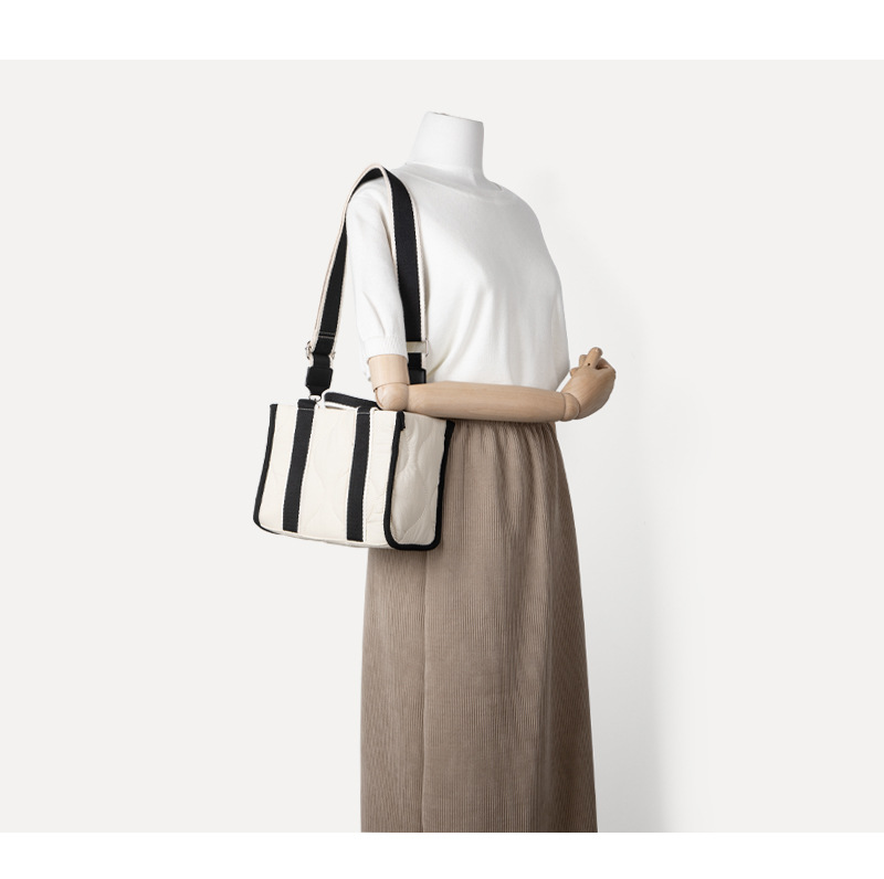 Customized bags for women, new Korean style ins, contrasting color, vertical pattern, high-end nylon quilted tote bag, hand-held shopping bag
