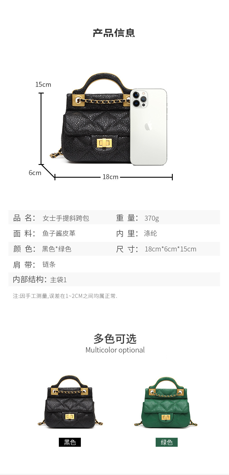 Internal structure of the bag: Zipper secret pocket, mobile phone bag, ID bag
