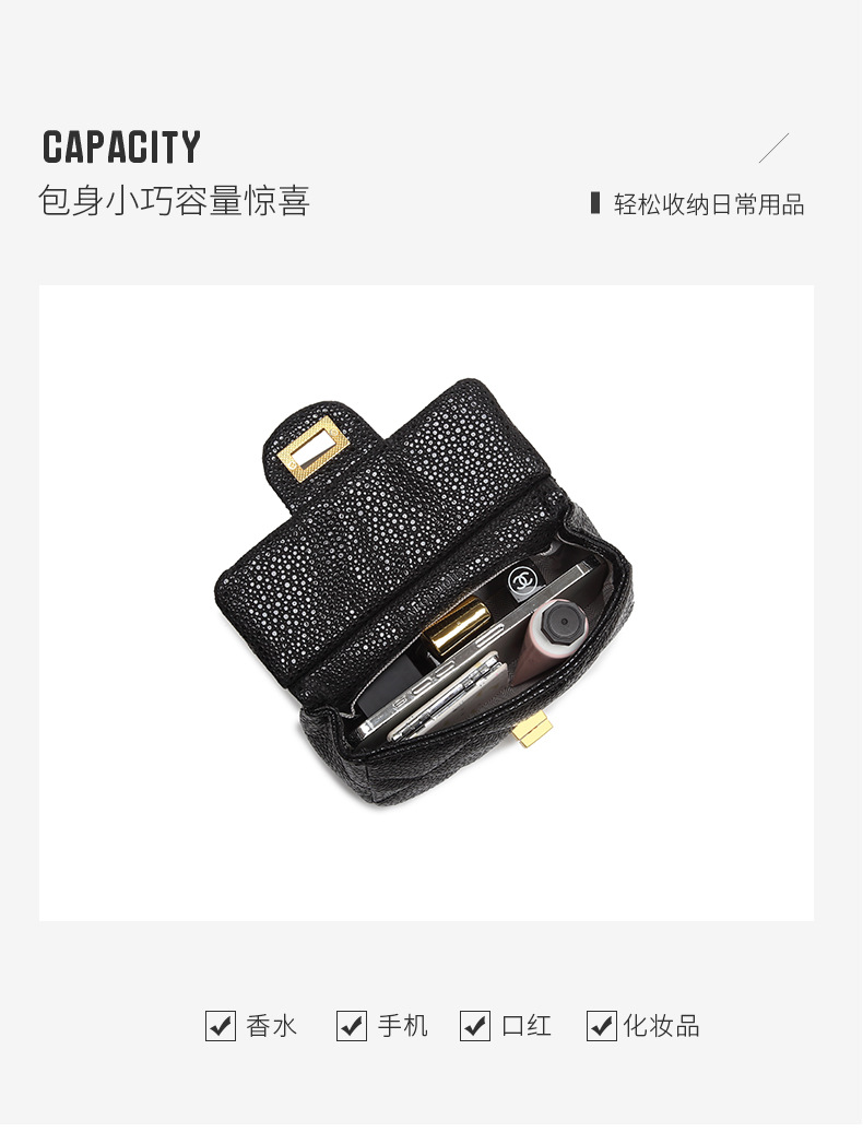 Caviar 2023 new trendy Internet celebrity women's bag small fragrant style rhombus armpit bag portable chain crossbody bag