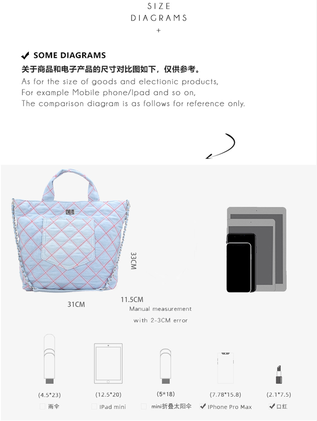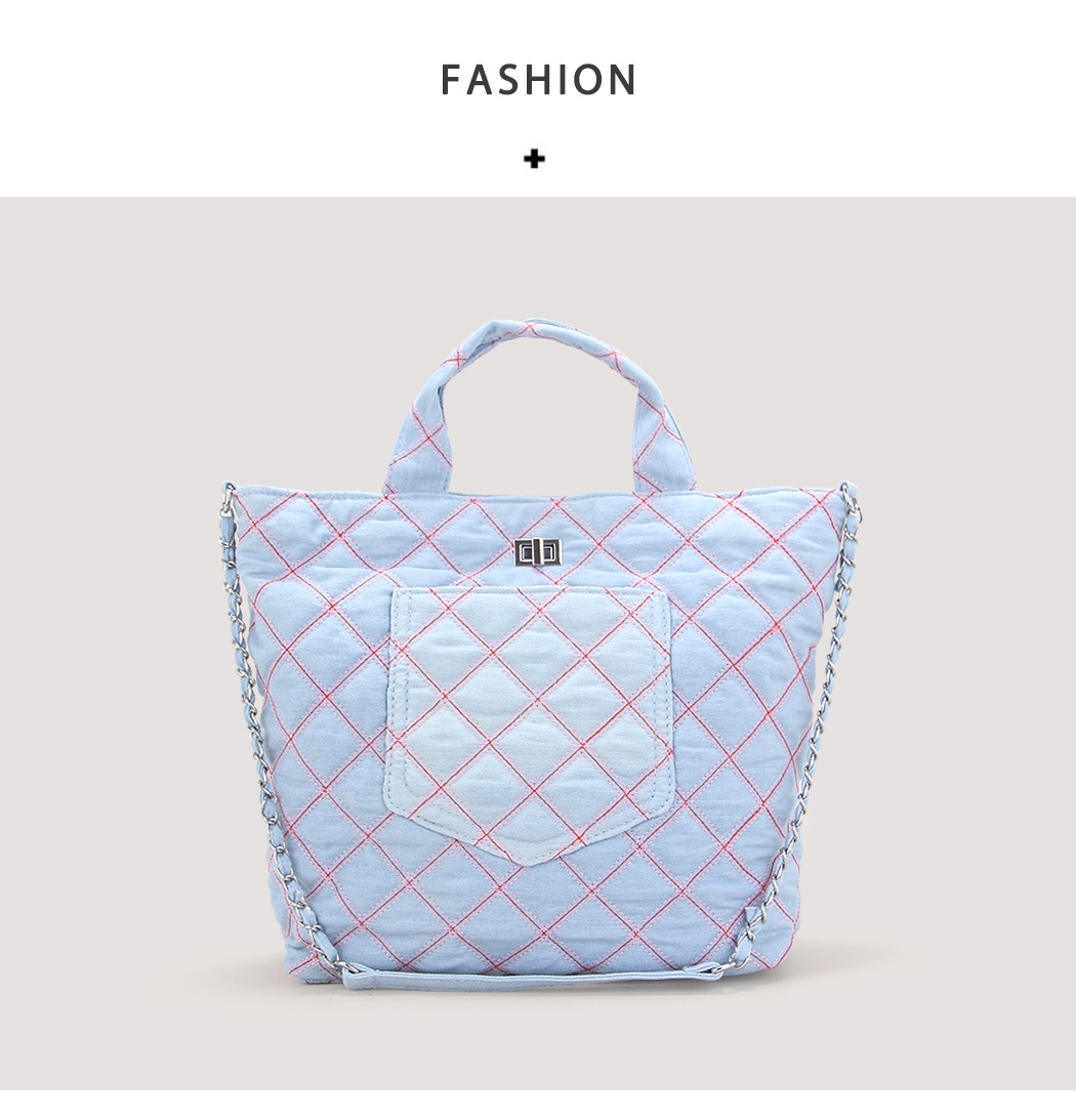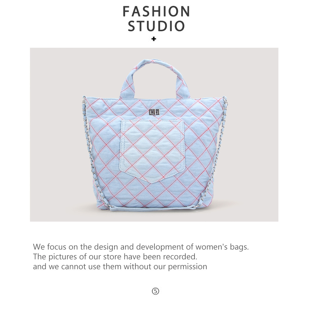 Large-capacity rhombus embroidery bag for women 2023 summer new portable tote bag for class commuting shoulder bag cloth bag