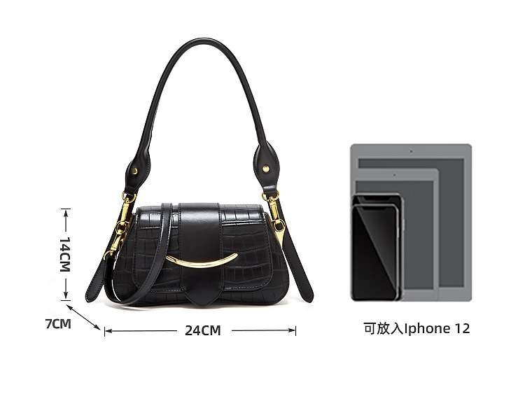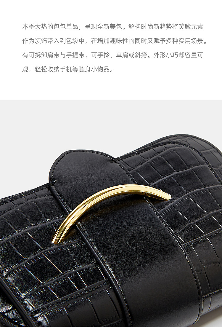 New fashionable crocodile pattern armpit bag, high-end goddess portable baguette bag, Internet celebrity trendy shoulder crossbody smiley face bag