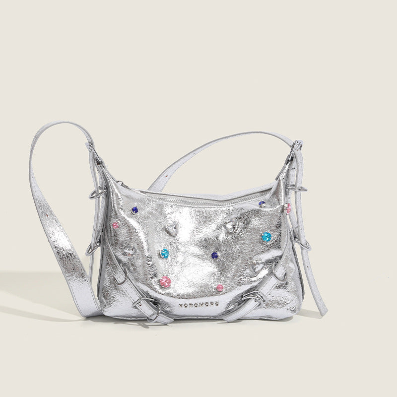 2023 this year’s popular new women’s bag solid color tote bag with rhinestone decoration, high-end casual shoulder crossbody bag