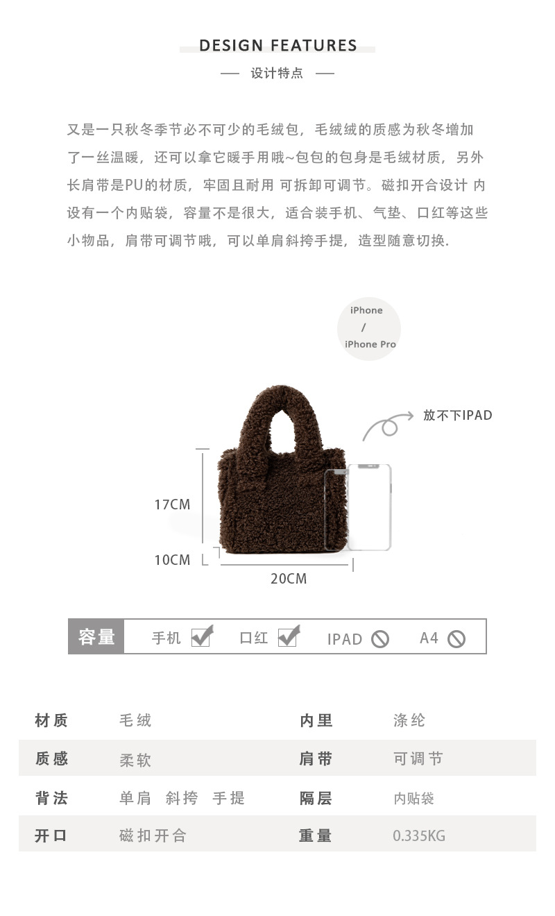 Bags for Women 2023 Autumn and Winter New Cute Plush Handbag Atmosphere Niche Lazy Style Crossbody Shoulder Bag