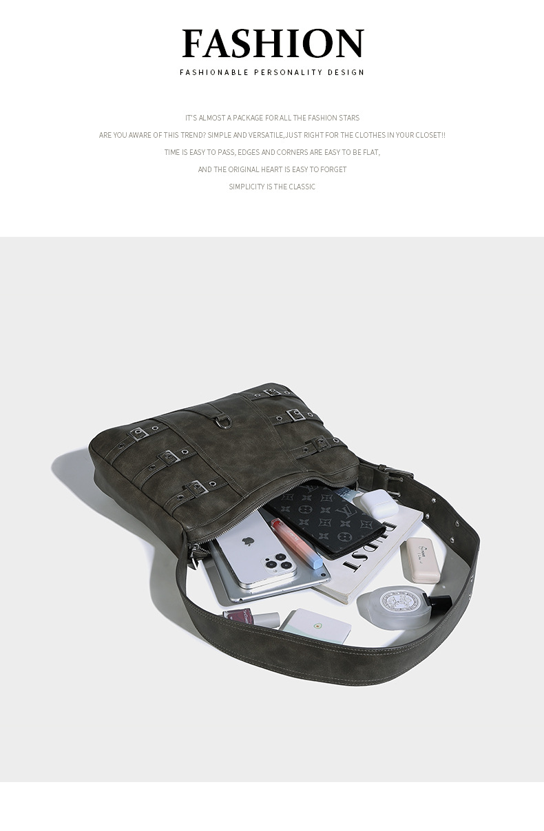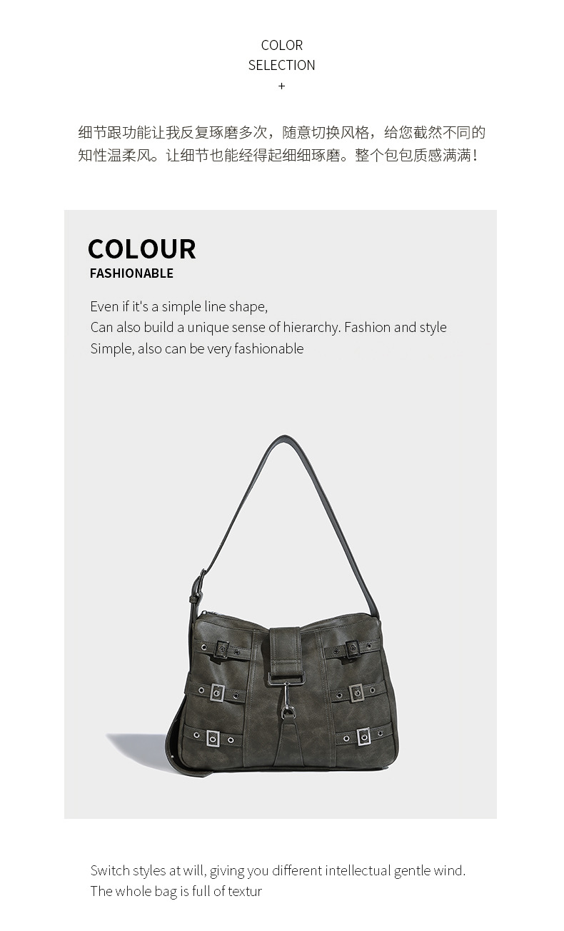 Large-capacity tote bag for women 2023 new high-end distressed shoulder handbag wide shoulder strap commuter crossbody bag