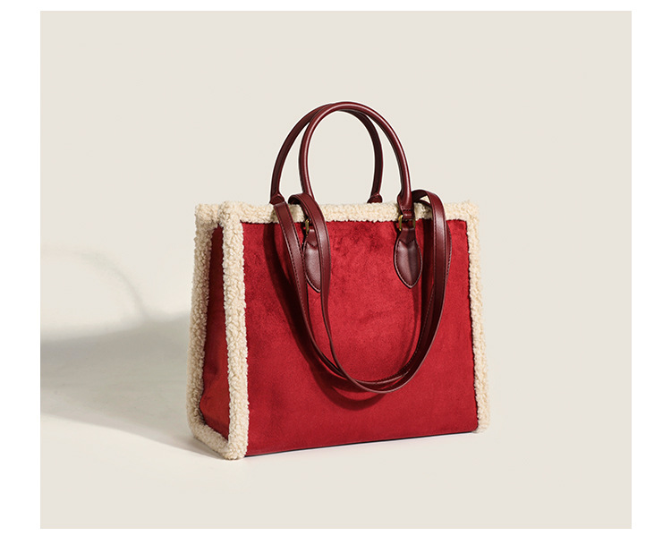 Brown plush velvet handheld tote bag for women 2023 winter new work bag single shoulder crossbody commuter bag