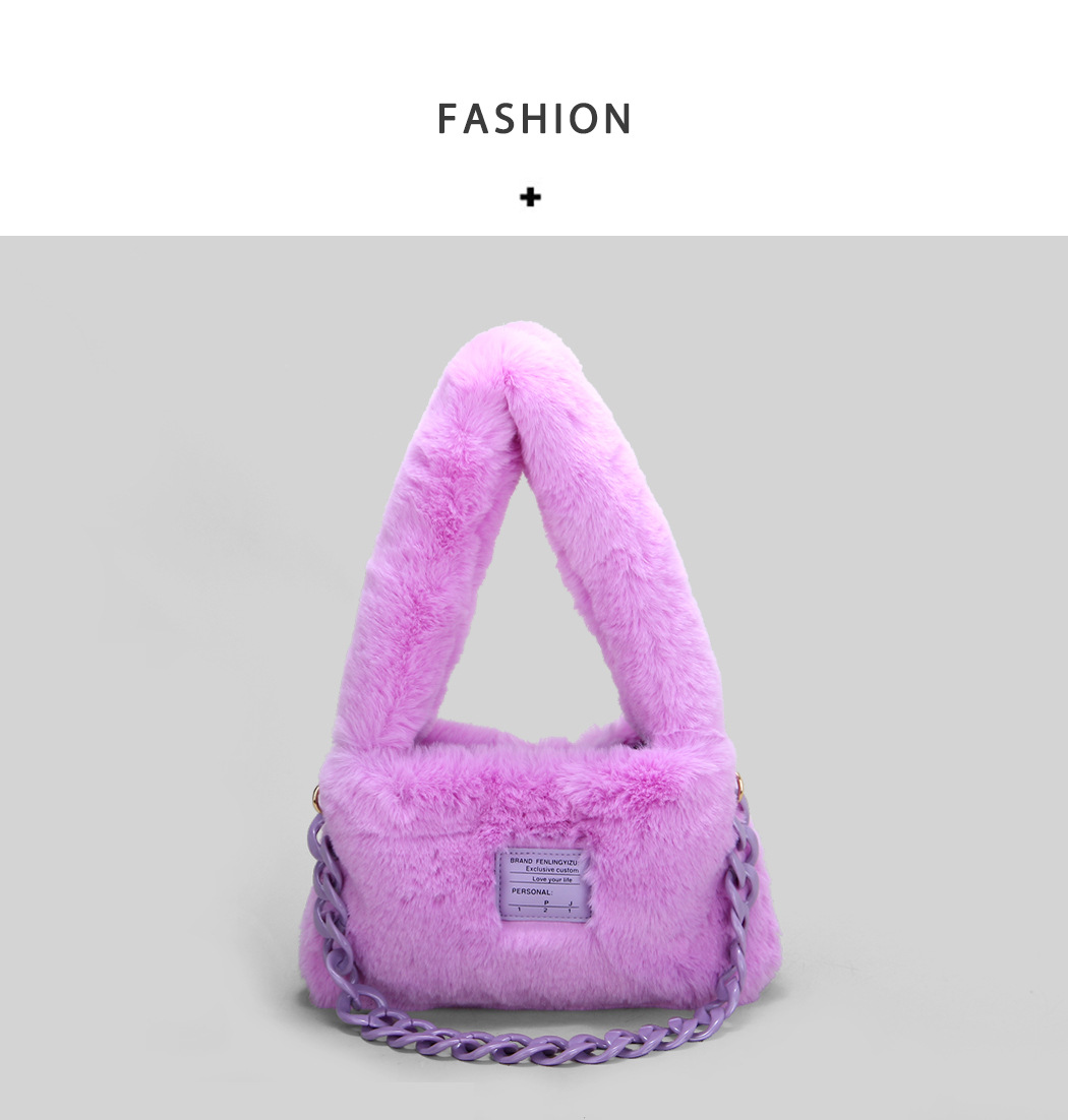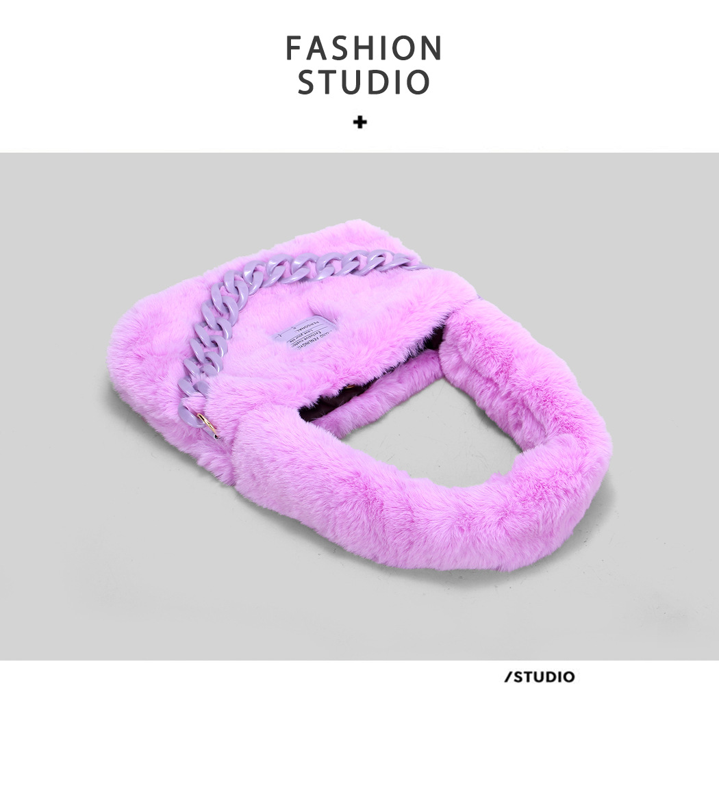 2023 New Large Capacity Furry Handbag Women's Fashion Trend Simple Solid Color One-Shoulder Niche Tote Bag Handbag