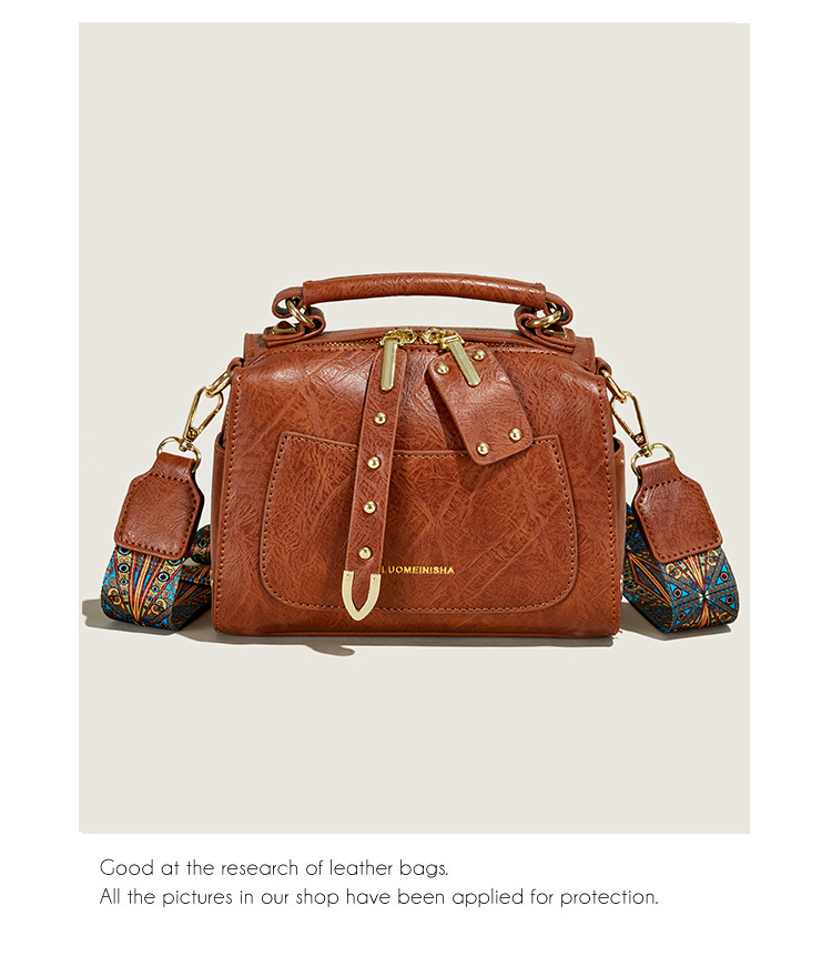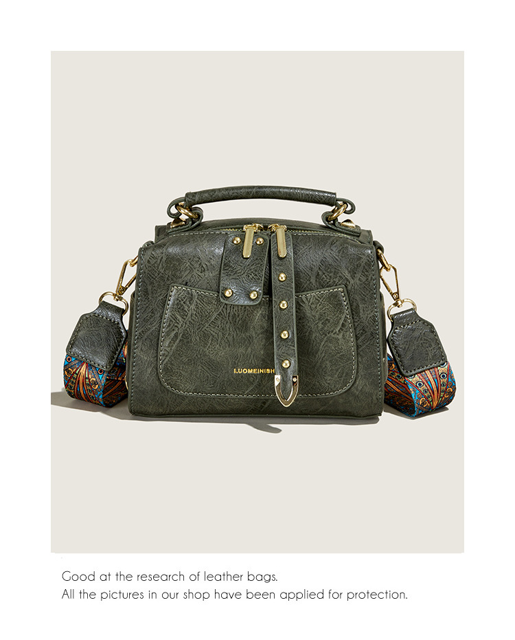 Spring new fashion portable doctor bag, retro waxed leather, versatile one-shoulder crossbody bag, street shooting, internet celebrity wide shoulder strap