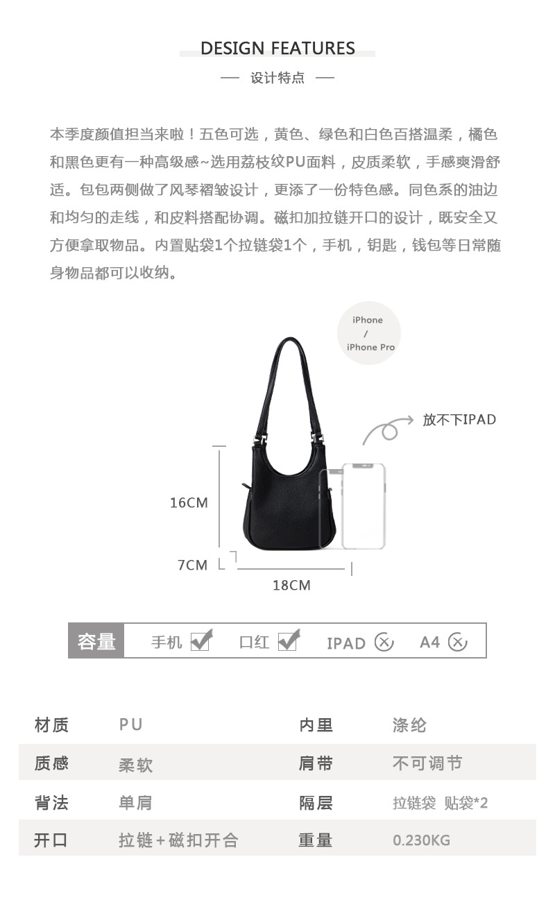 Bags for women 2022 summer new Korean niche design litchi pattern one-shoulder armpit bag fashionable and versatile handbag
