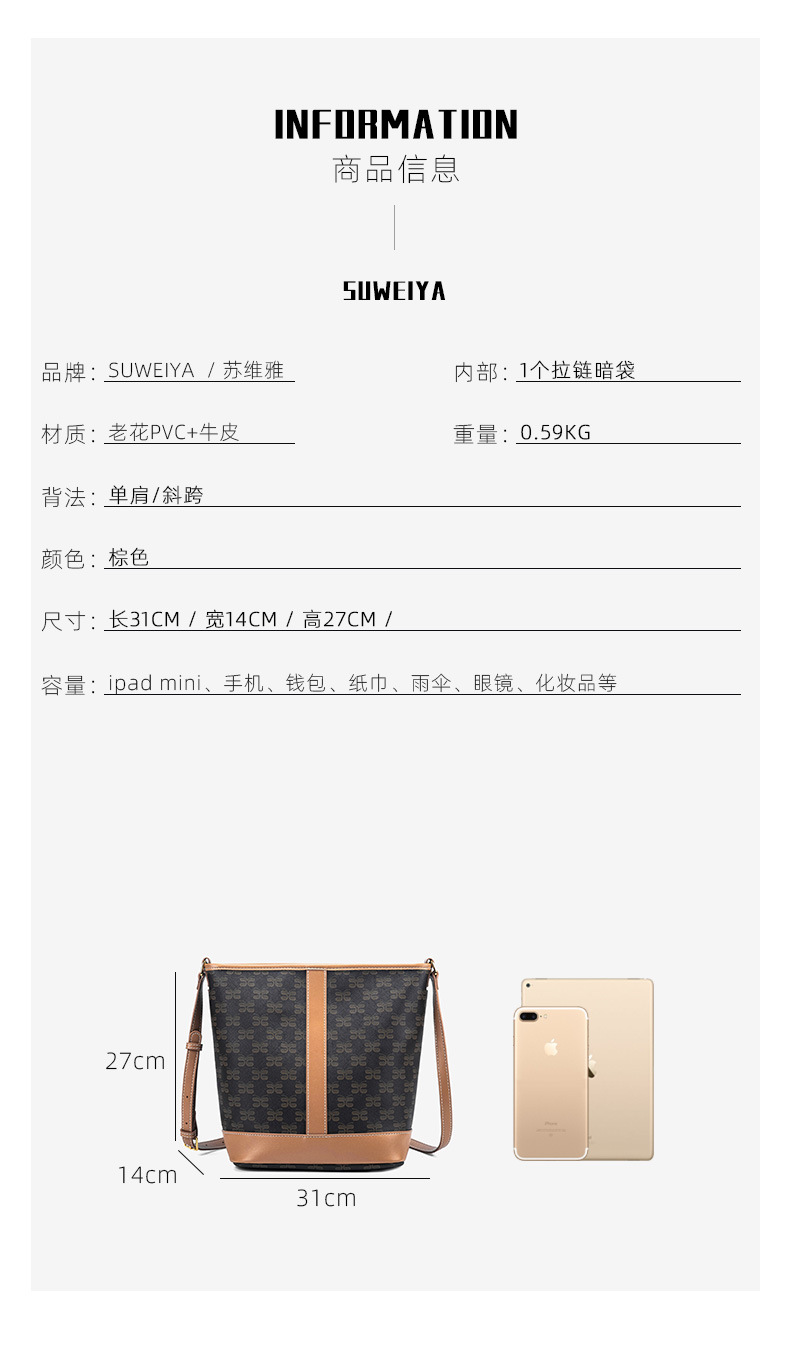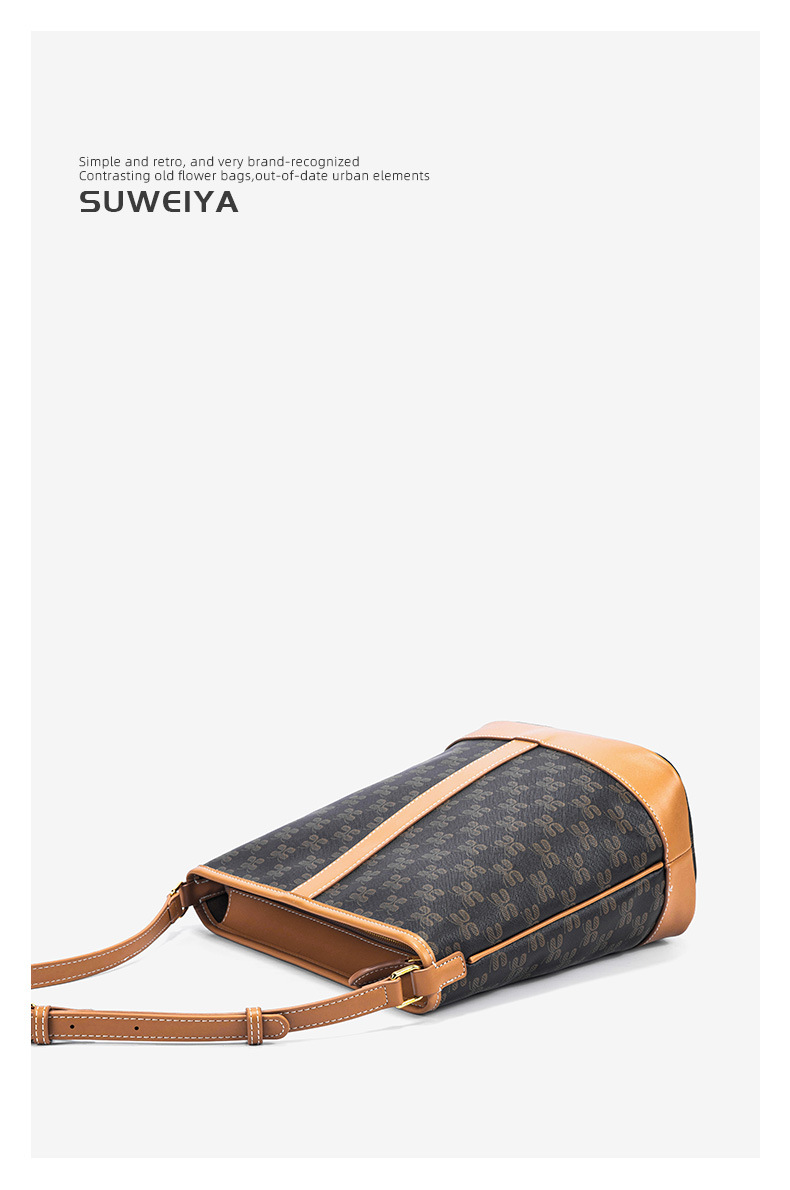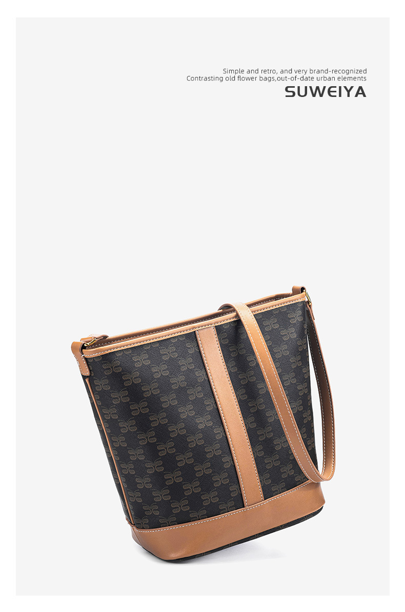 European and American retro printed old flower Arc de Triomphe bucket bag, high-end niche printed commuting large capacity shoulder bag for women