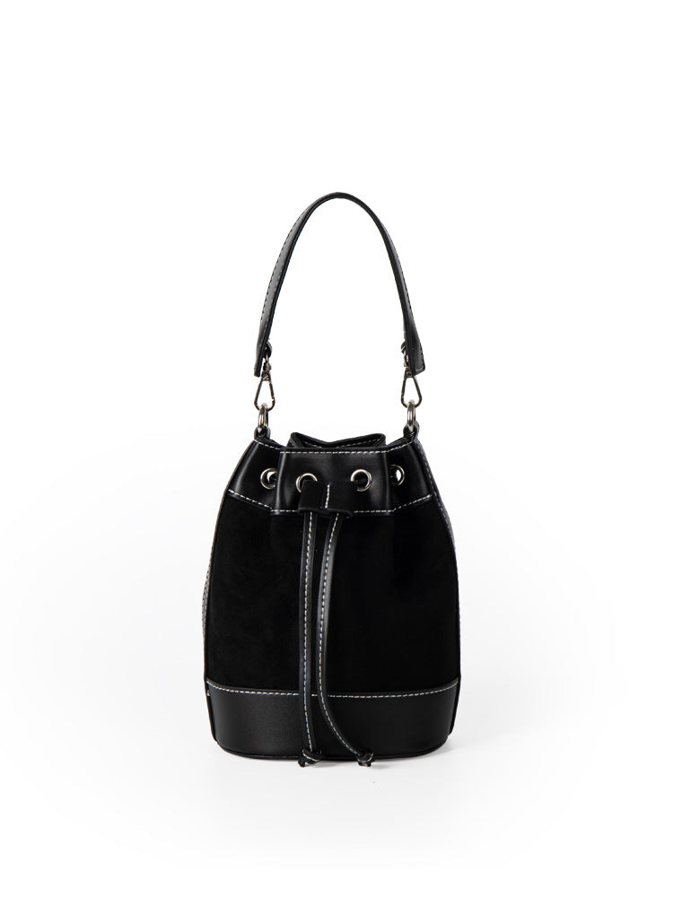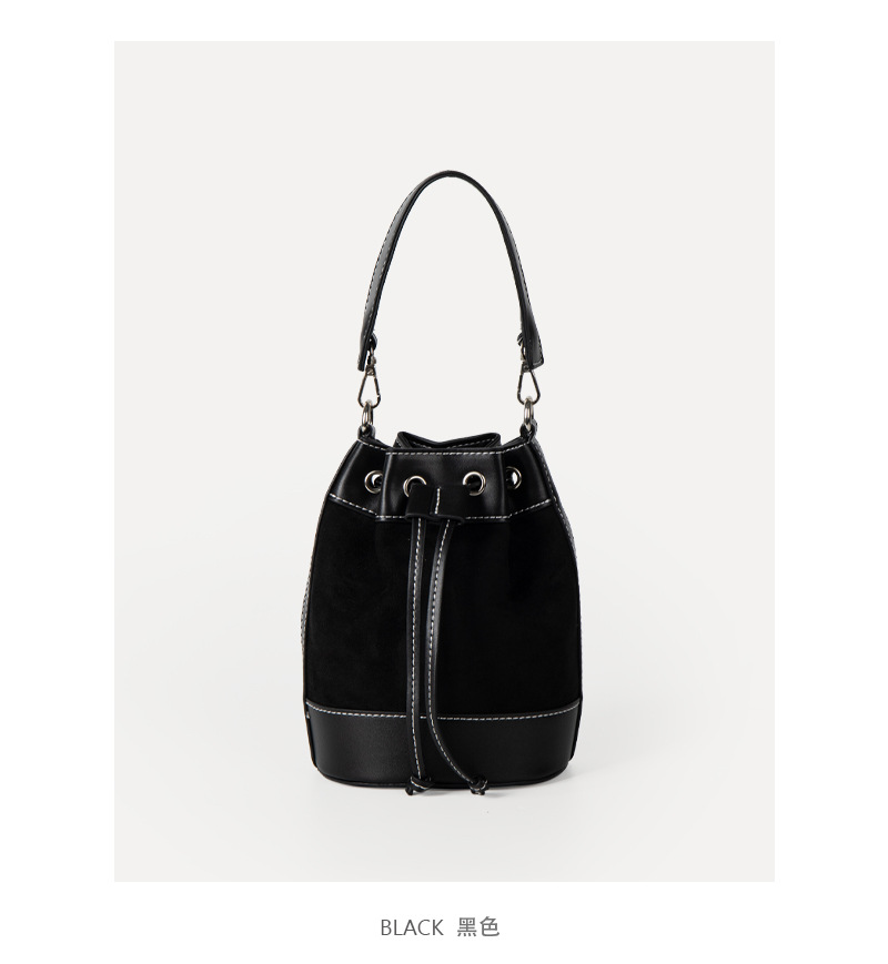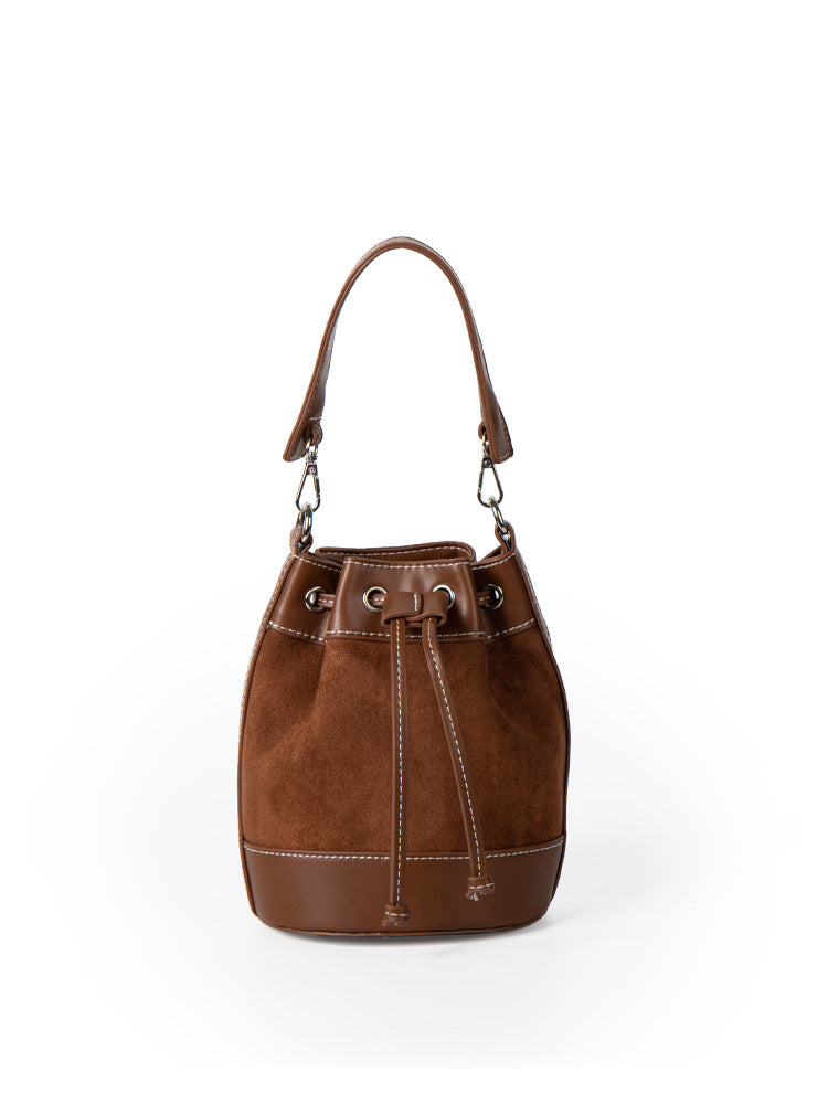 Niche retro high-end suede bucket bag 2023 autumn and winter new style spliced PU shoulder bag versatile handbag