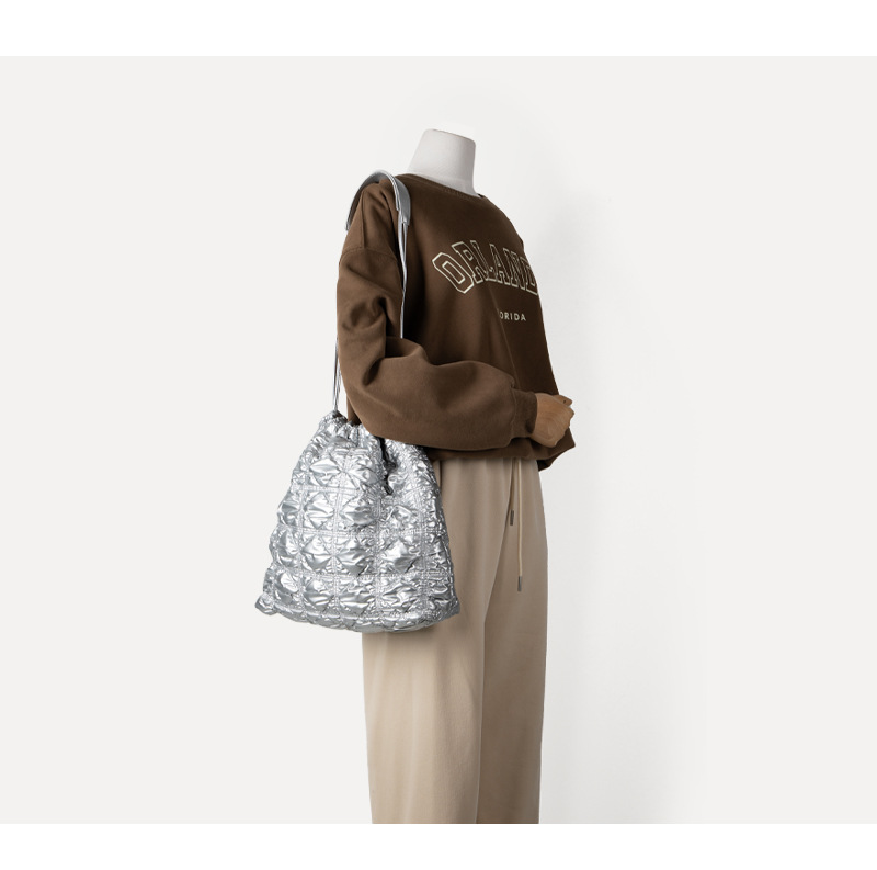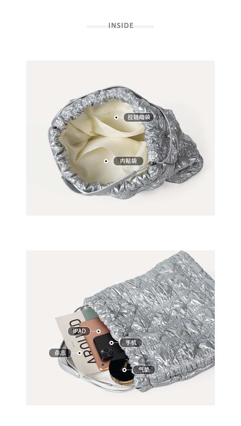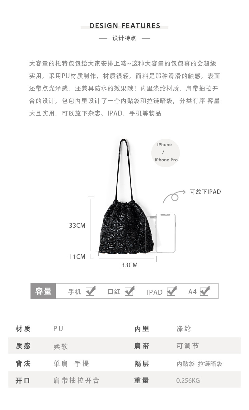 2023 New Autumn and Winter Pleated PU High-Quality Handbag Women’s Niche Personality Versatile Diamond Shoulder Bucket Bag