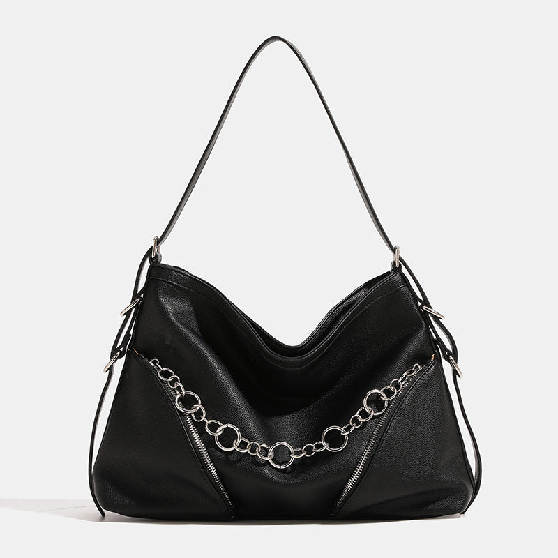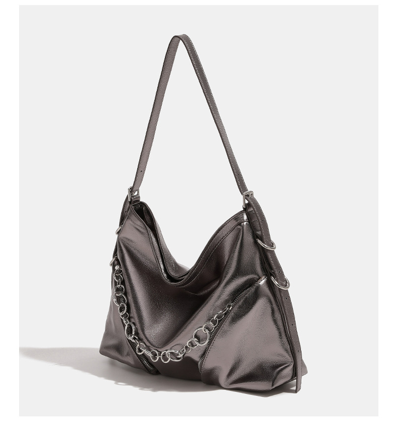 2023 summer new niche design soft leather chain tote bag women's large-capacity shoulder bag crossbody commuter bag