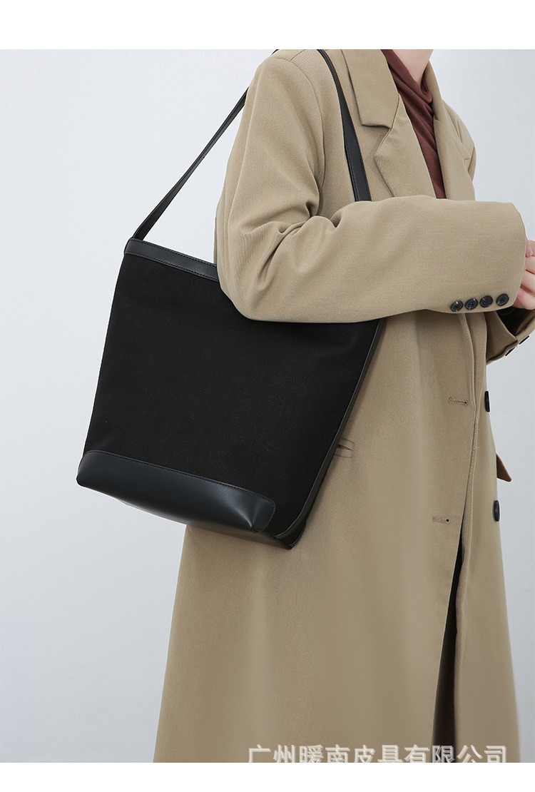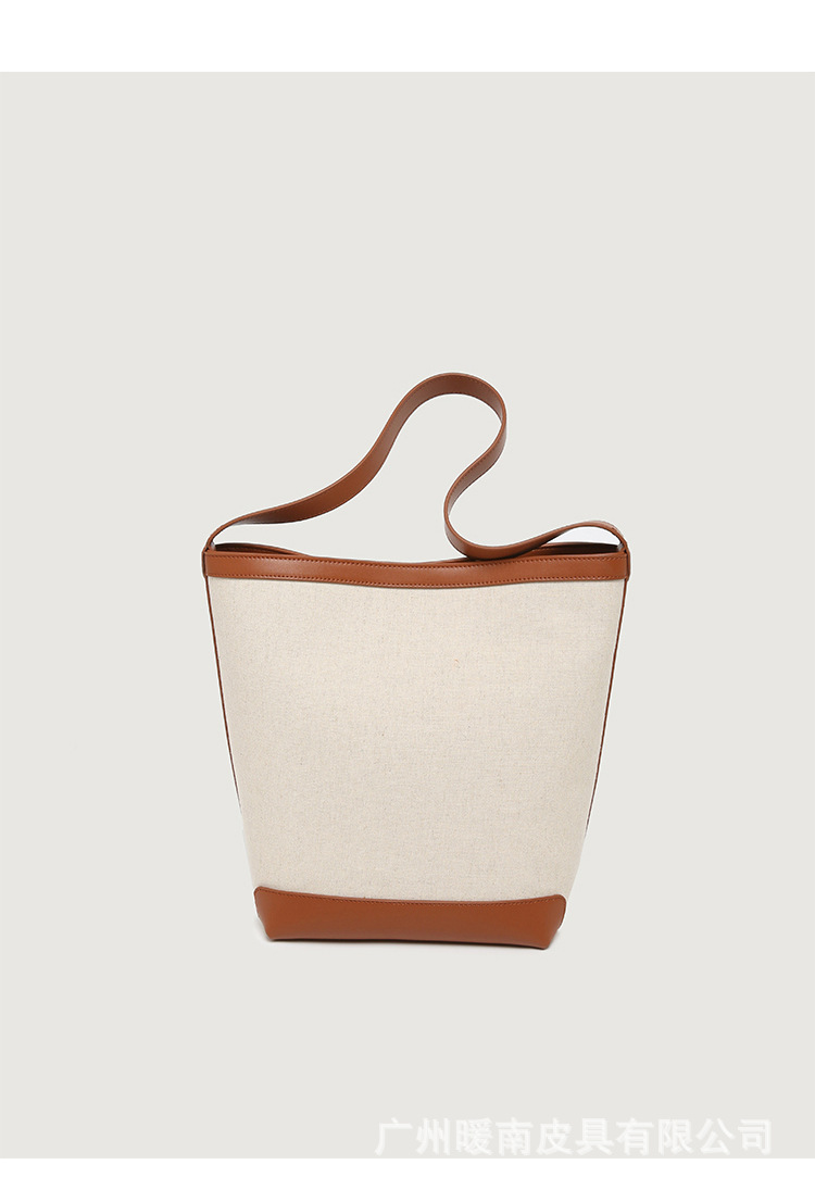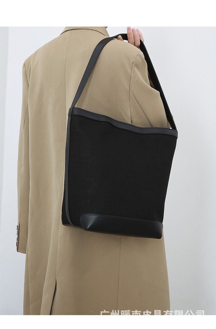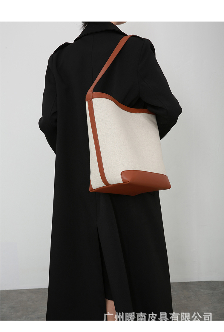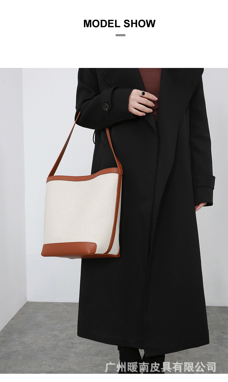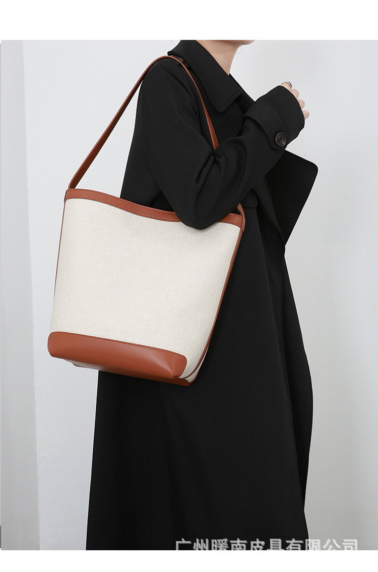 Canvas Bucket Bag 2023 New Fashion Versatile Tote Bag Women's Autumn Large Capacity Single Shoulder Cylindrical Commuting Bag