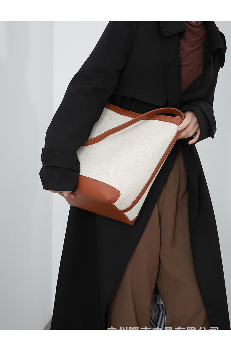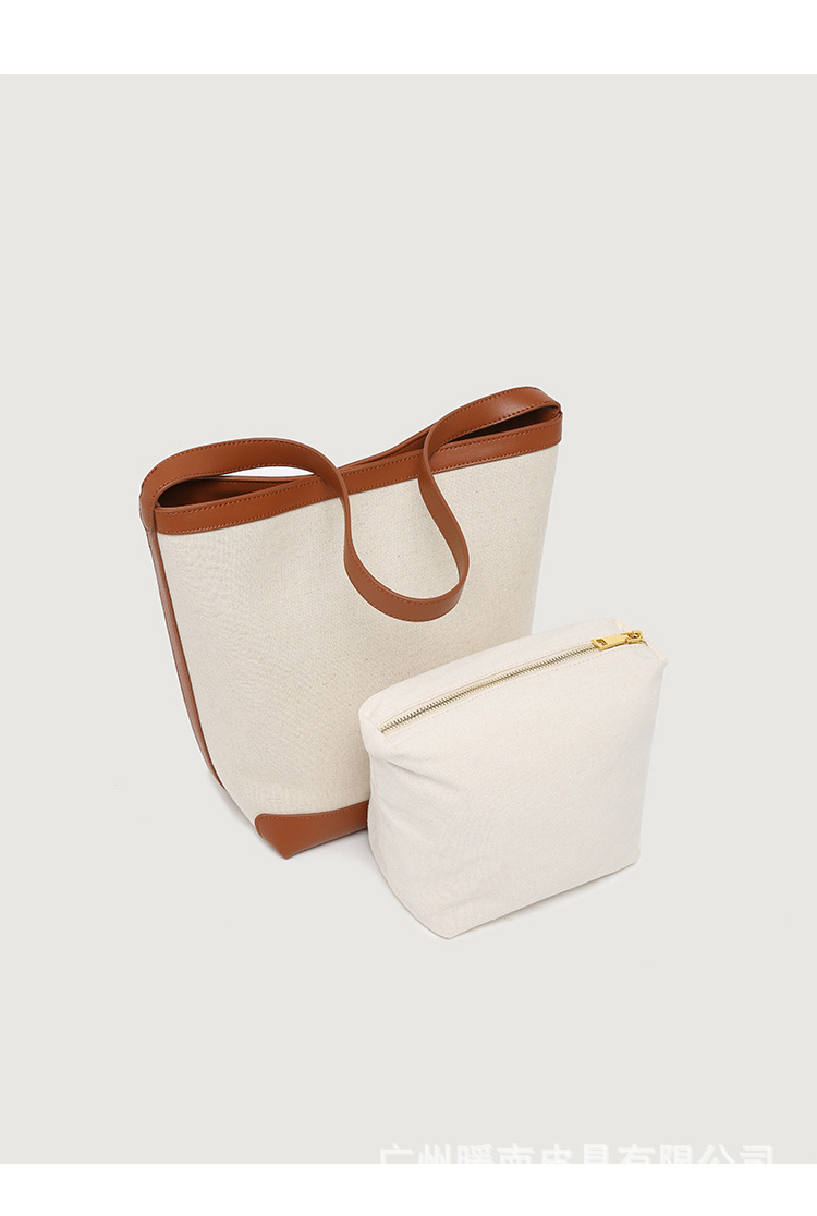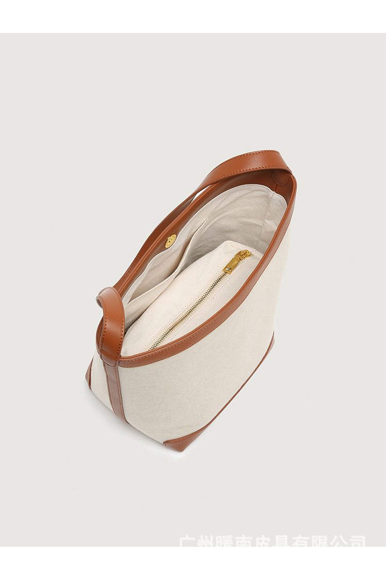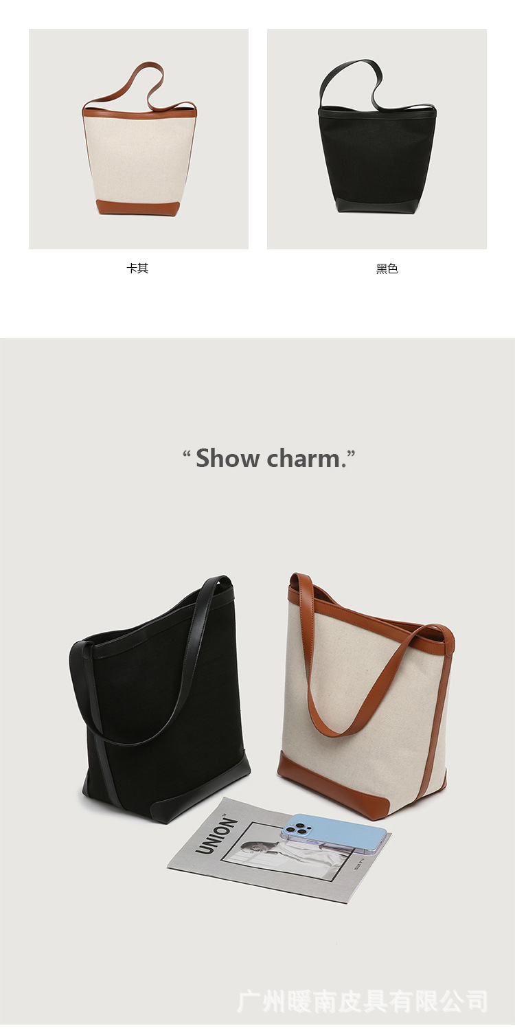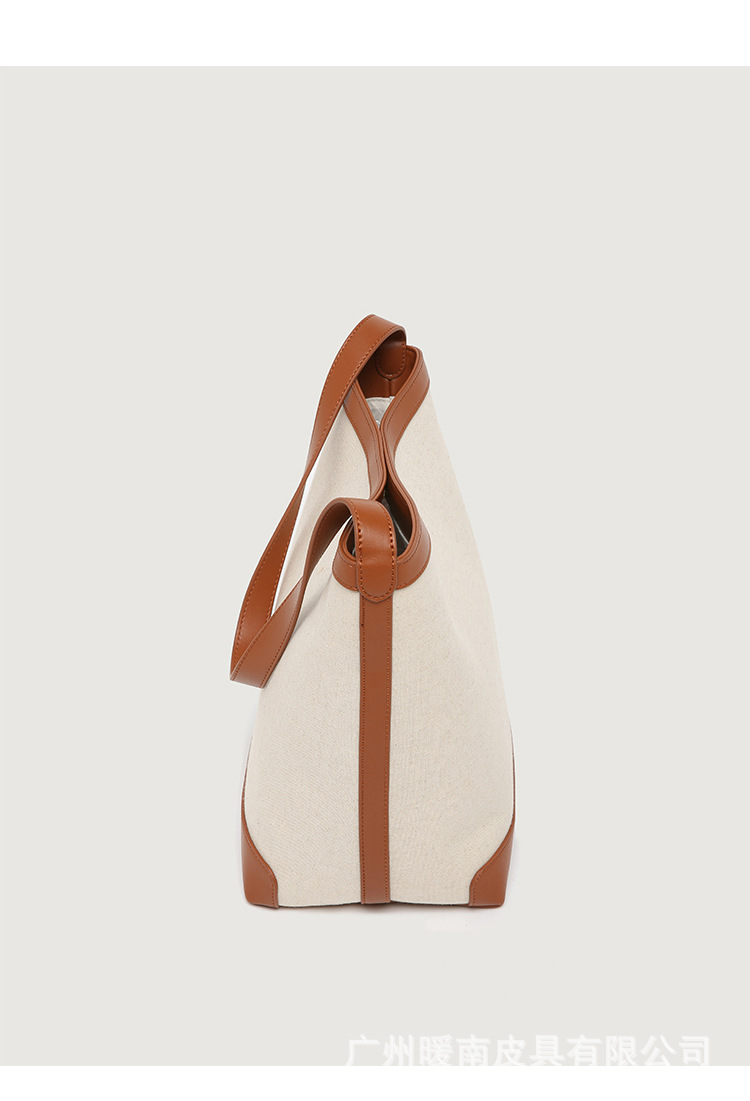 Canvas Bucket Bag 2023 New Fashion Versatile Tote Bag Women's Autumn Large Capacity Single Shoulder Cylindrical Commuting Bag