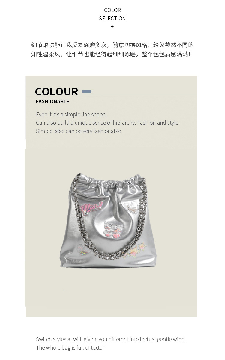 New women's bag, niche design, high-end silver large-capacity shoulder bag, chain pattern decoration design, cross-body bag