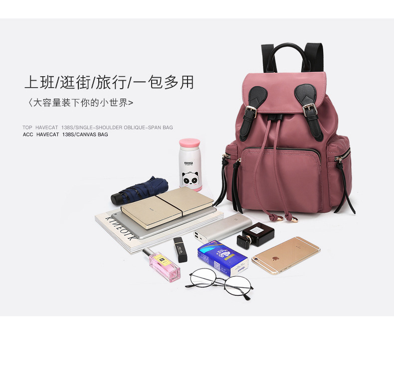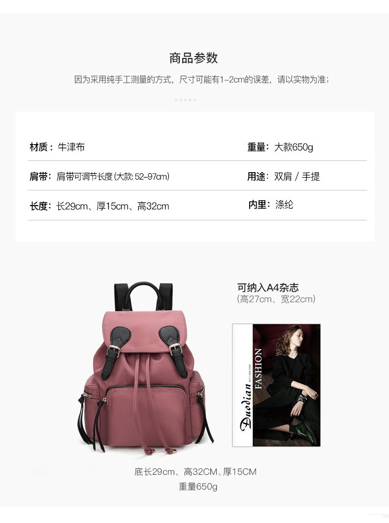 Nylon backpack women's casual backpack 2022 new Korean version Oxford cloth fashionable drawstring large-capacity travel bag trendy