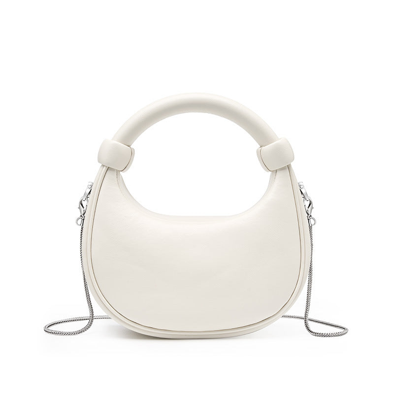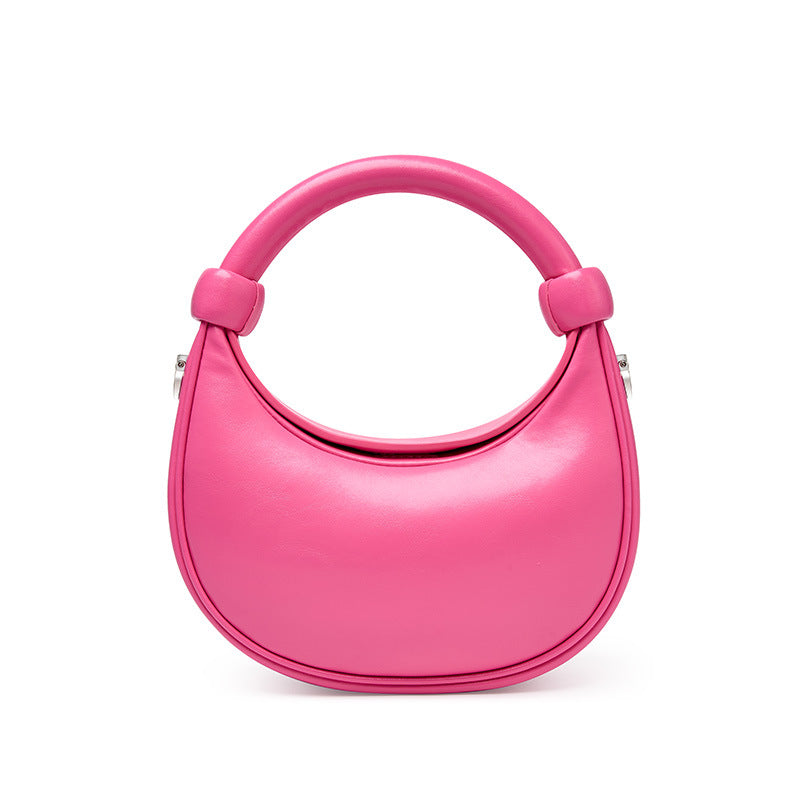 Cowhide handbag, exquisite rose pink small bag, crossbody crescent bag for women, 2023 new fashion women's bag