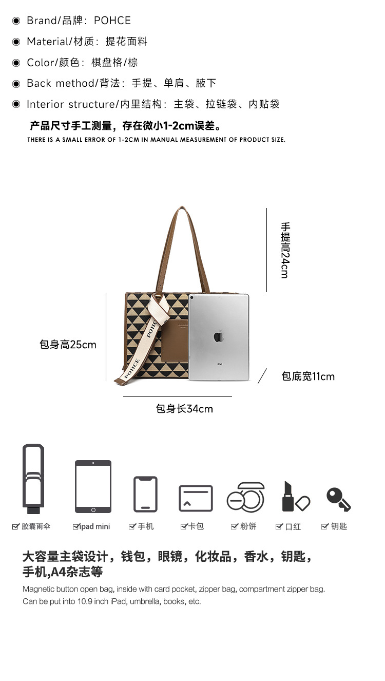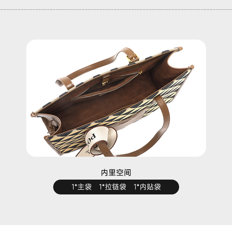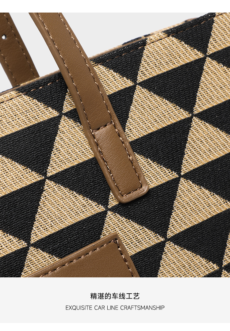 Summer new trendy women's handbag, fashionable niche design, high-end commuting plaid single shoulder large tote bag