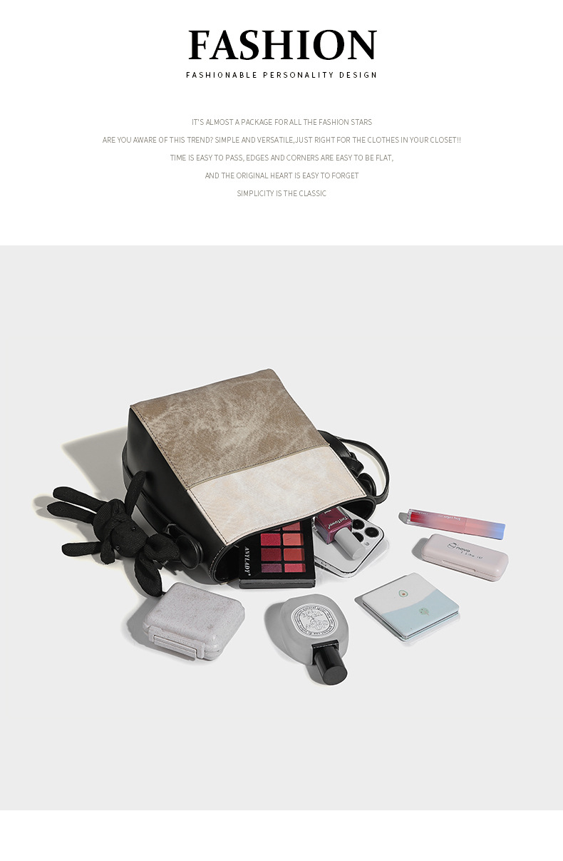 Bucket bag women's bag 2023 new retro color matching commuter bag niche design single shoulder crossbody bag textured tote bag