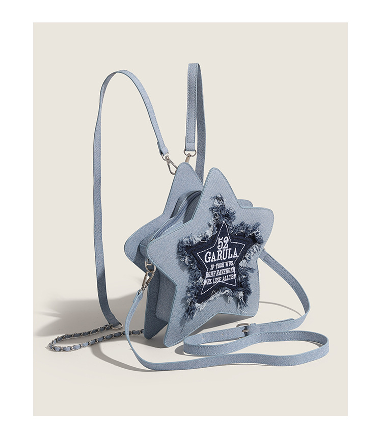 2023 new autumn niche design denim blue five-pointed star backpack embroidered letters tassel shoulder crossbody bag