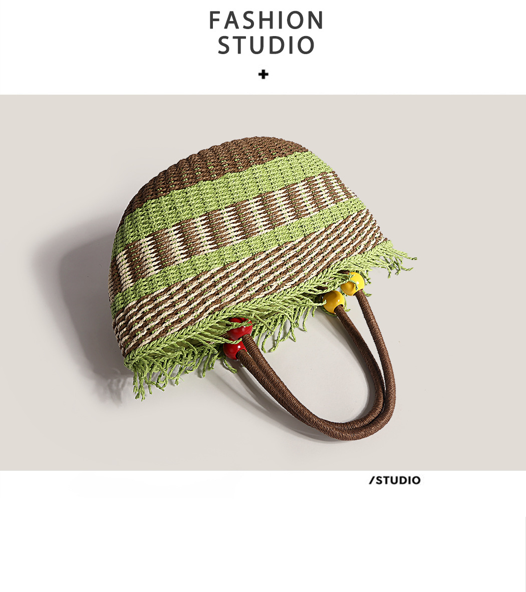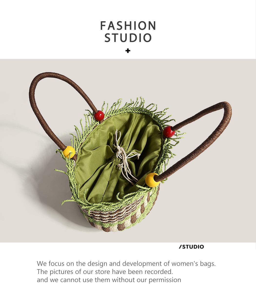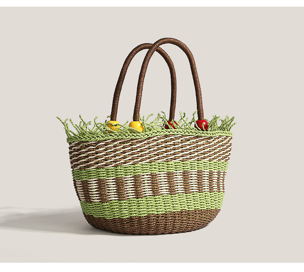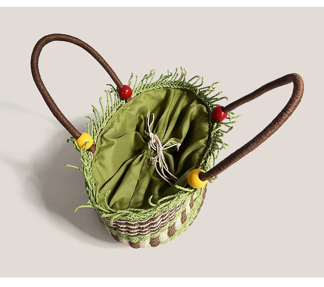 2023 Fruit Picnic Basket Beaded Weaving Holiday Beach Bag Cute Colorful Wooden Beads Hand Bag Pet Handbag