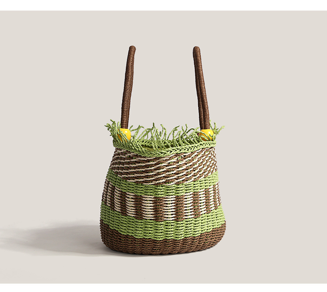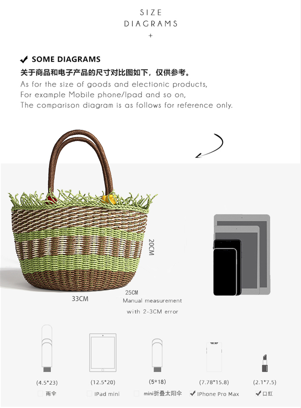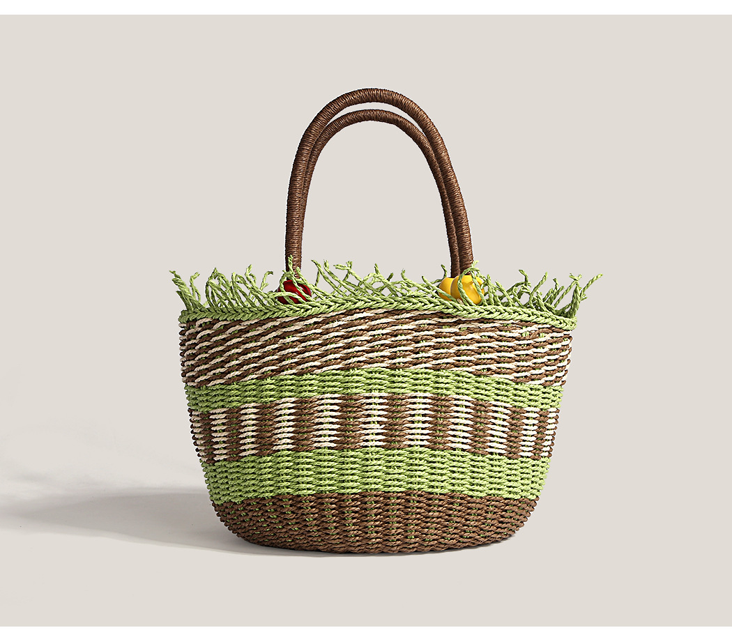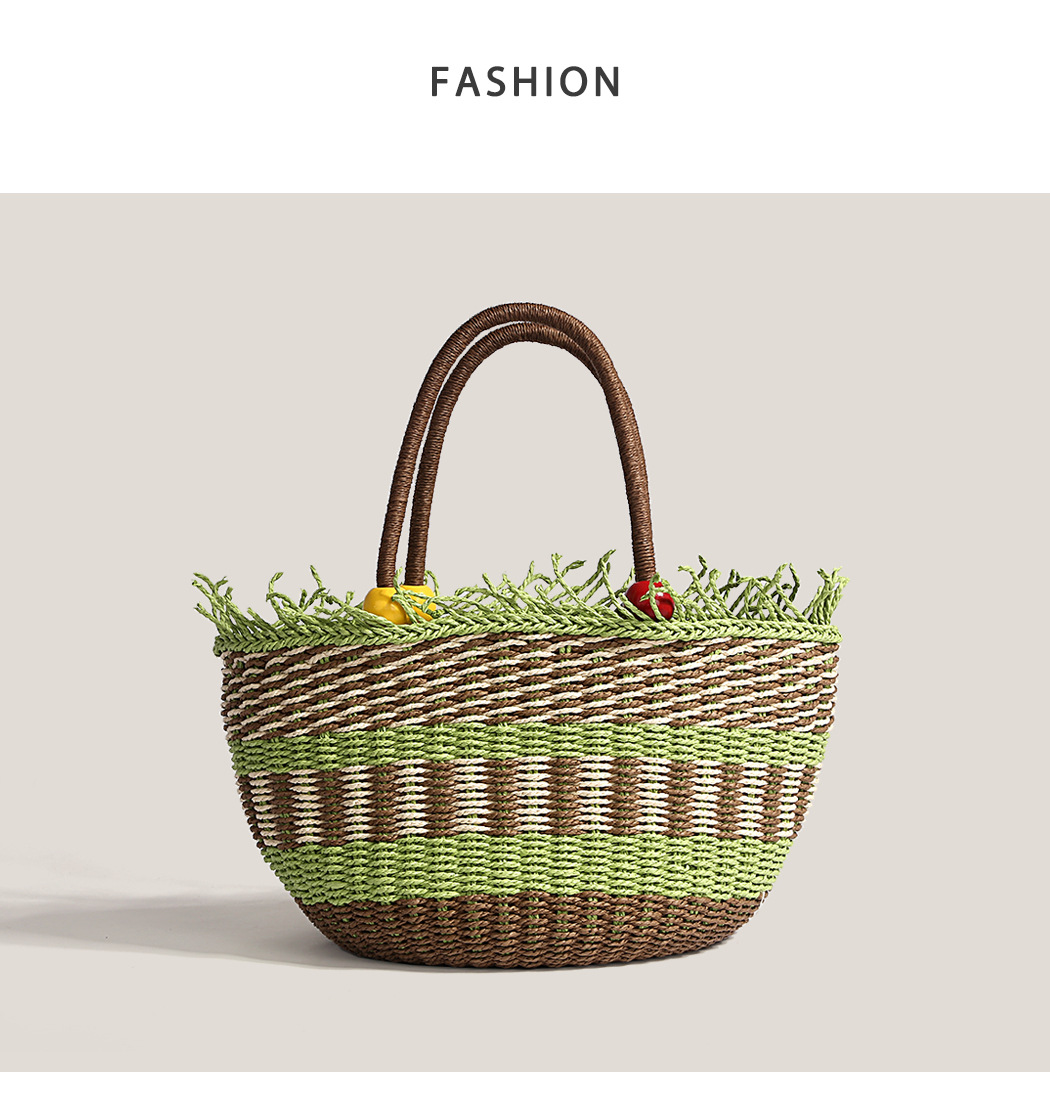 2023 Fruit Picnic Basket Beaded Weaving Holiday Beach Bag Cute Colorful Wooden Beads Hand Bag Pet Handbag