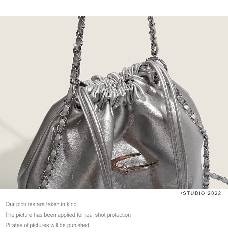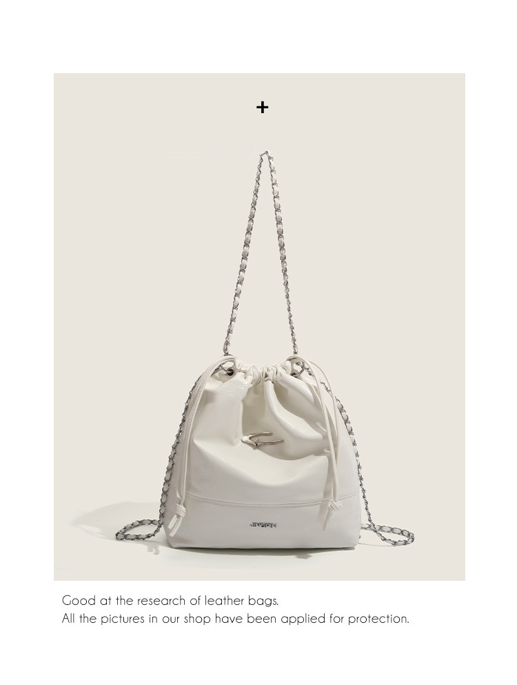 Niche design summer bag for women 2023 new chain drawstring small school bag texture soft leather backpack travel bag