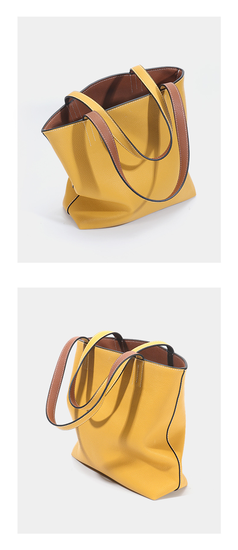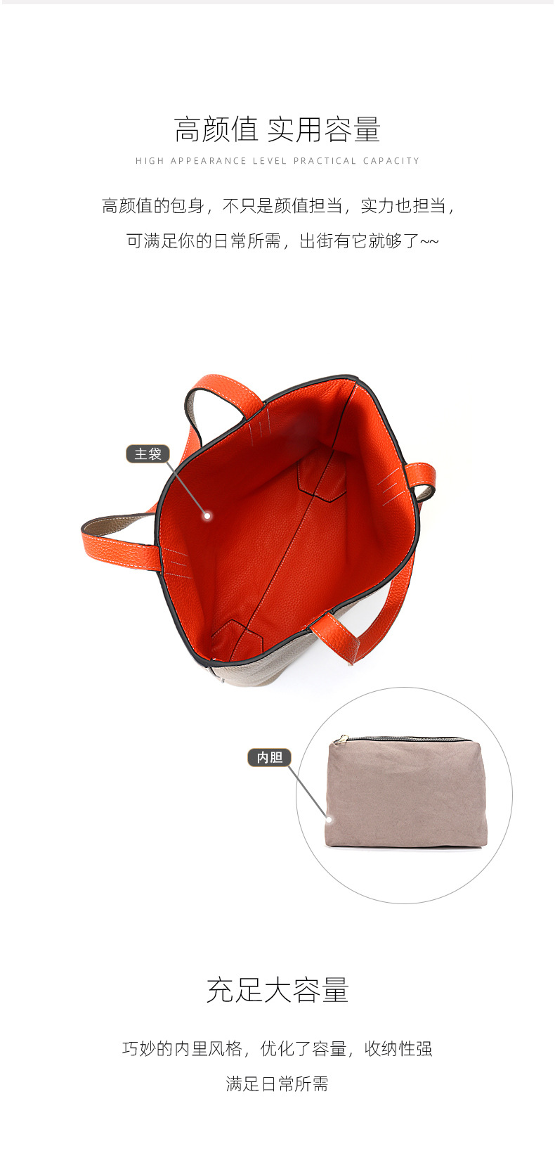 Autumn and winter tote bag commuter genuine leather women's bag simple bucket bag large capacity high-end single shoulder handheld women's bag