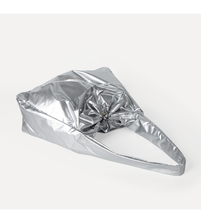South Korea's Dongdaemun new pleated versatile silver PU tote bag niche high-end large-capacity drawstring shoulder bag