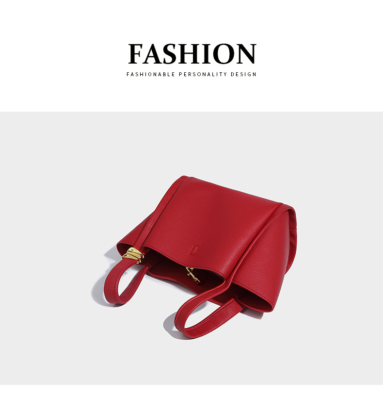 Red portable bucket bag for women 2023 new large-capacity multi-compartment tote bag high-end texture niche wedding bag