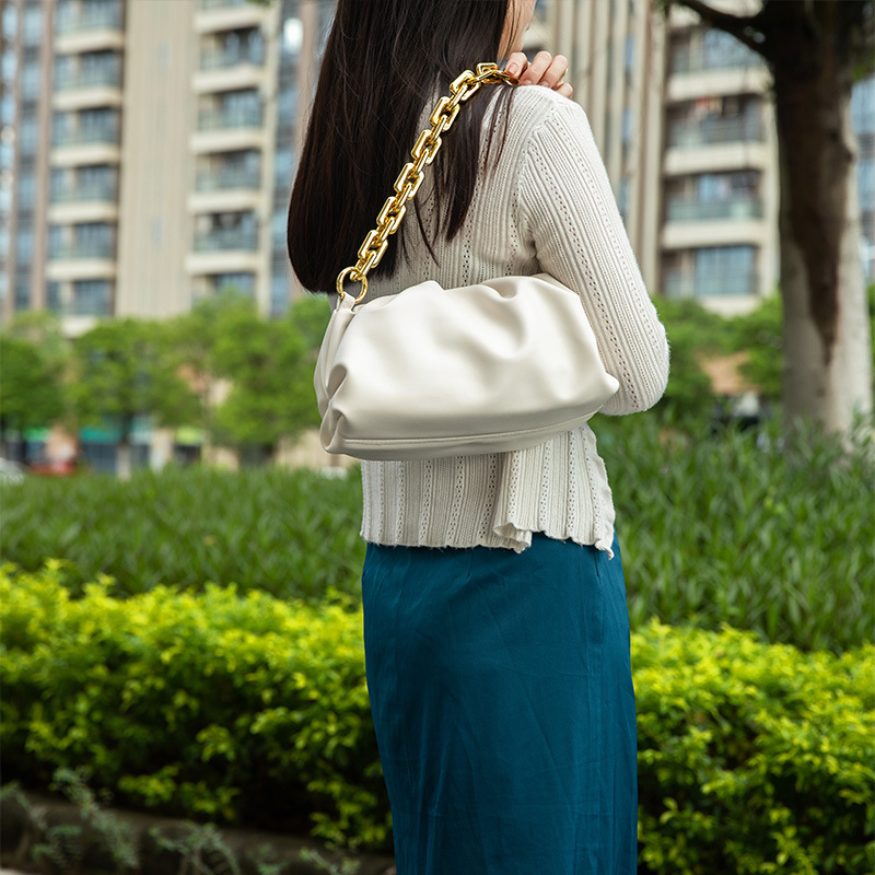 Star's same style chain cloud bag 2022 summer and autumn new French niche square bag pleated armpit single shoulder crossbody for women