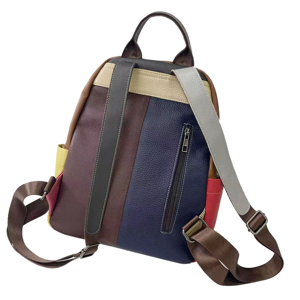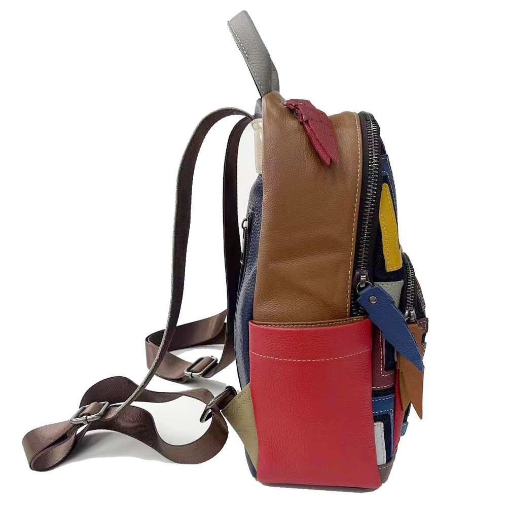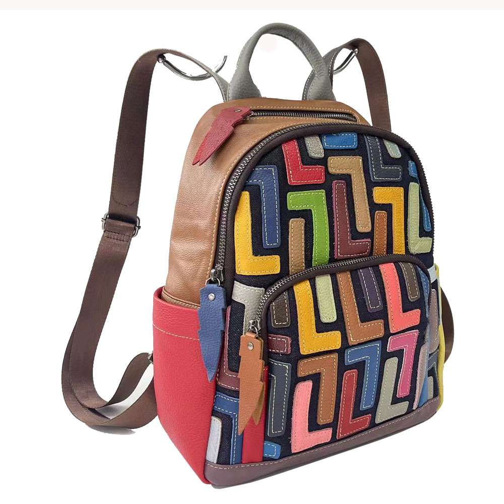 European and American new style genuine leather women's bag, colorful cowhide stitching backpack, retro casual women's bag, one-piece drop shipping