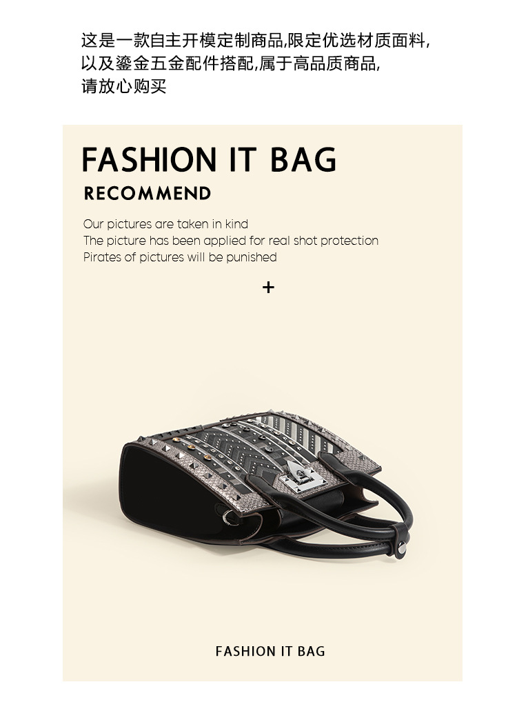 High-end texture niche design rivets commuter hand-carrying tote bag for women 2023 summer new cross-body bag trend