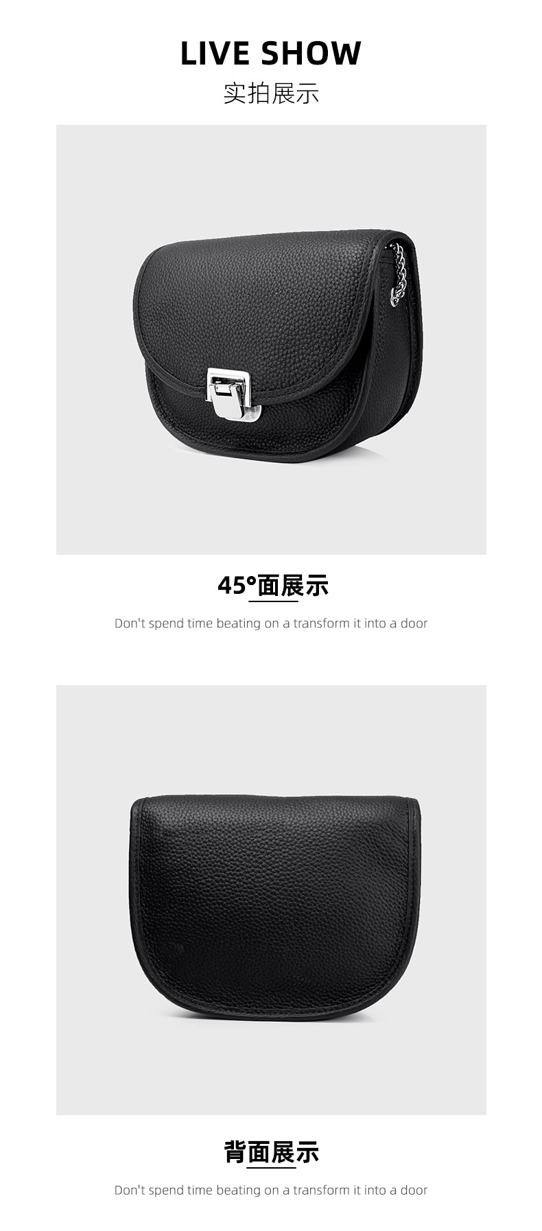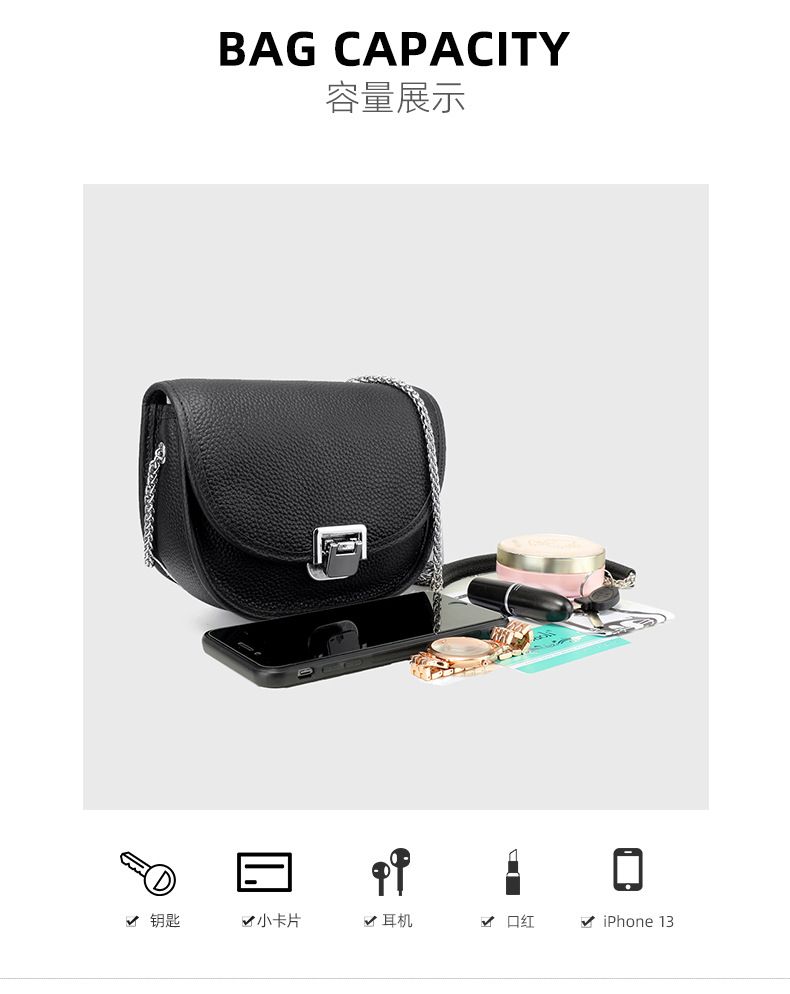 Spring and summer fashionable and elegant commuting women's shoulder bag first layer cowhide lock buckle solid color saddle bag flip chain crossbody bag