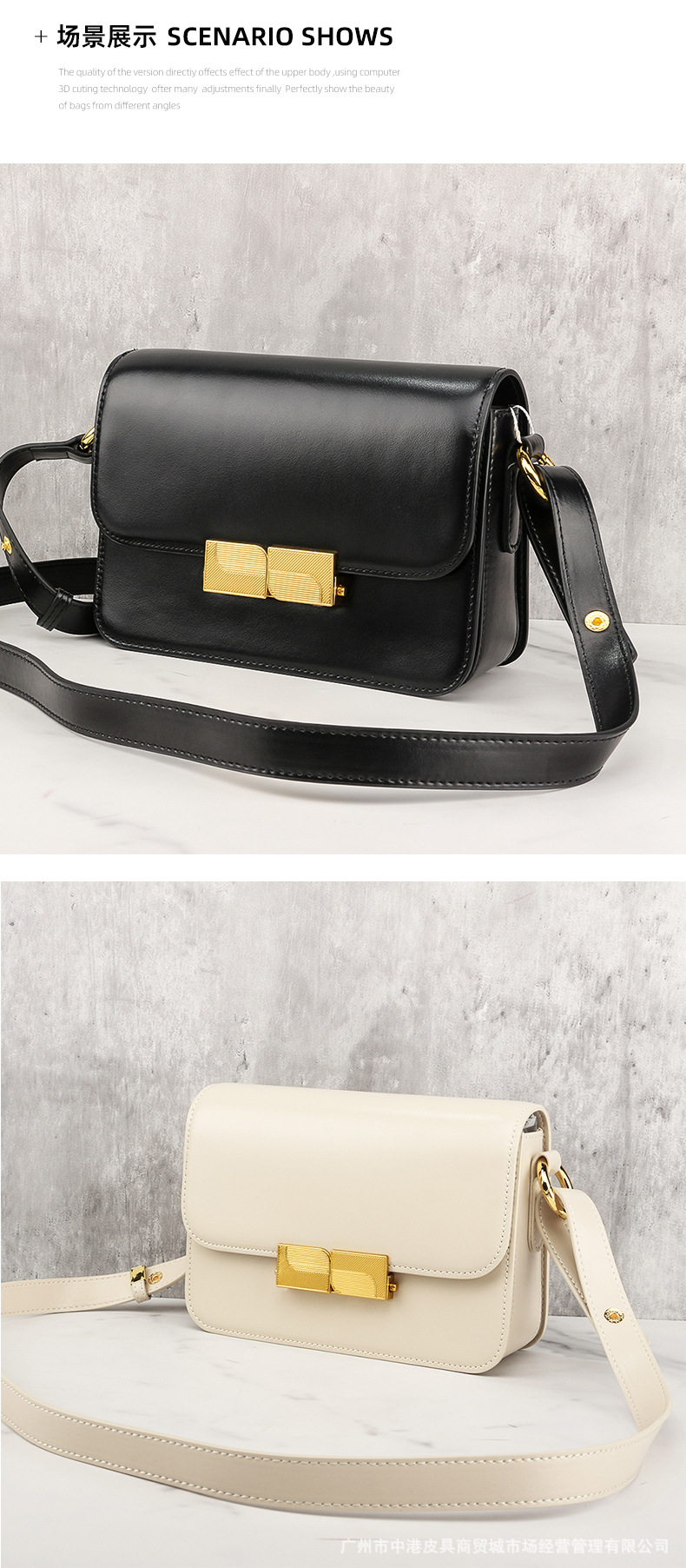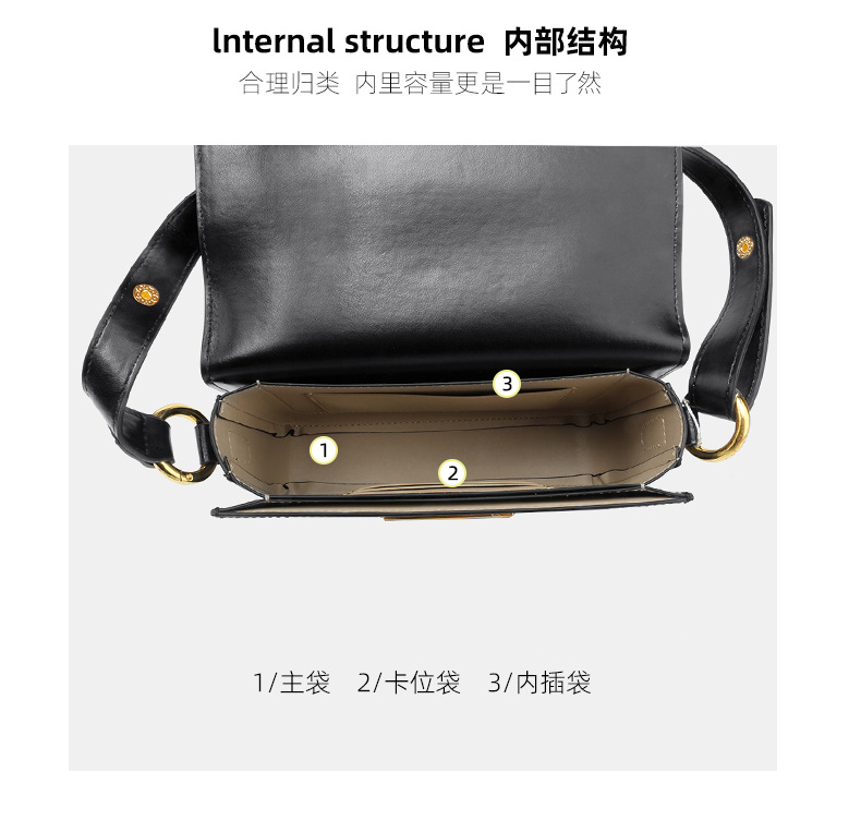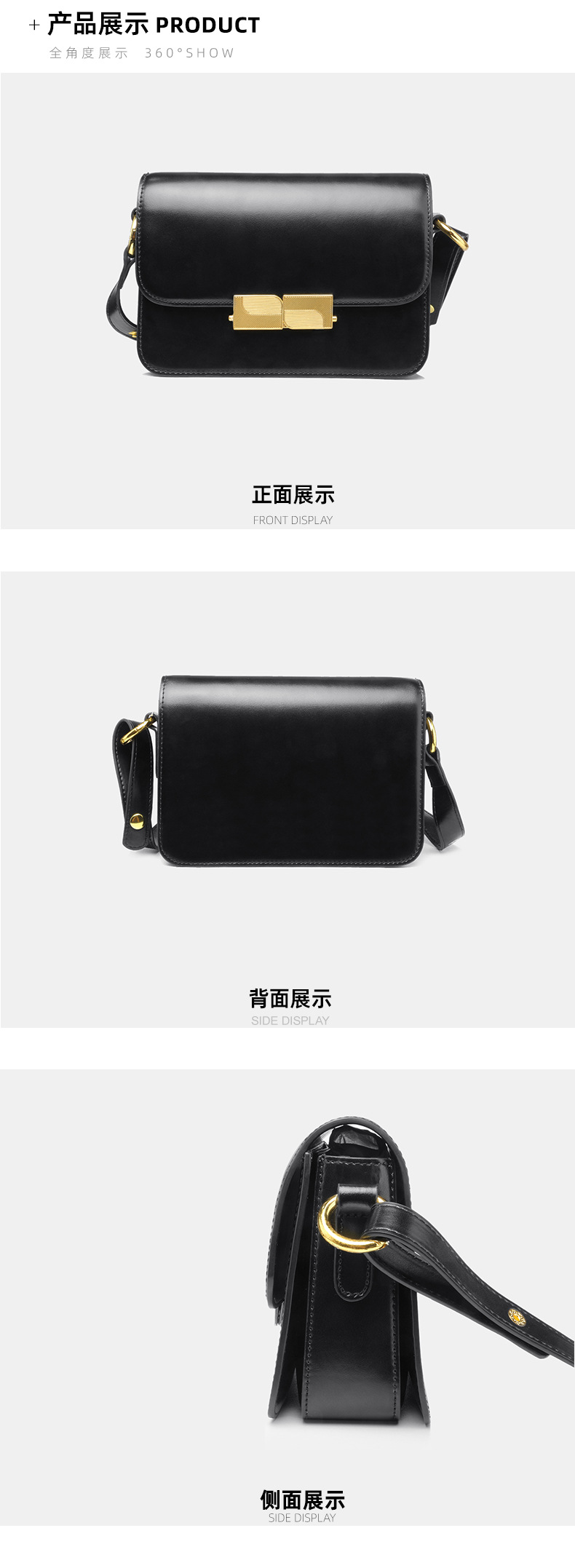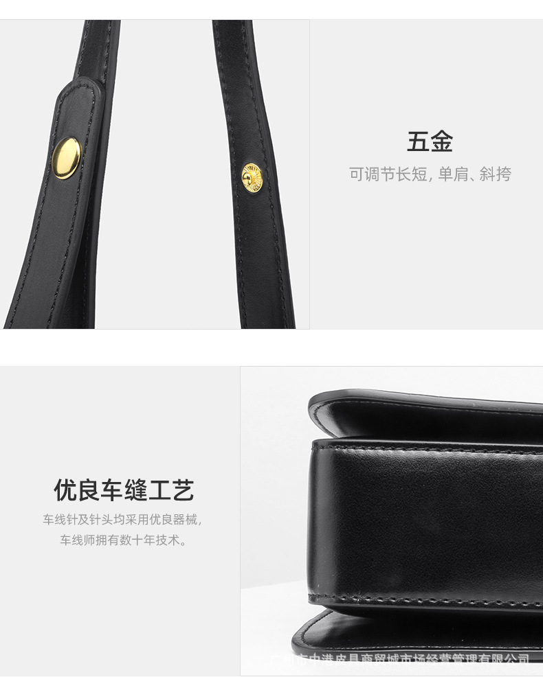 2023 Spring and Summer New Genuine Leather Women's Bag Black Simple Texture Genuine Retro Lock Shoulder Bag Crossbody Small Square Bag