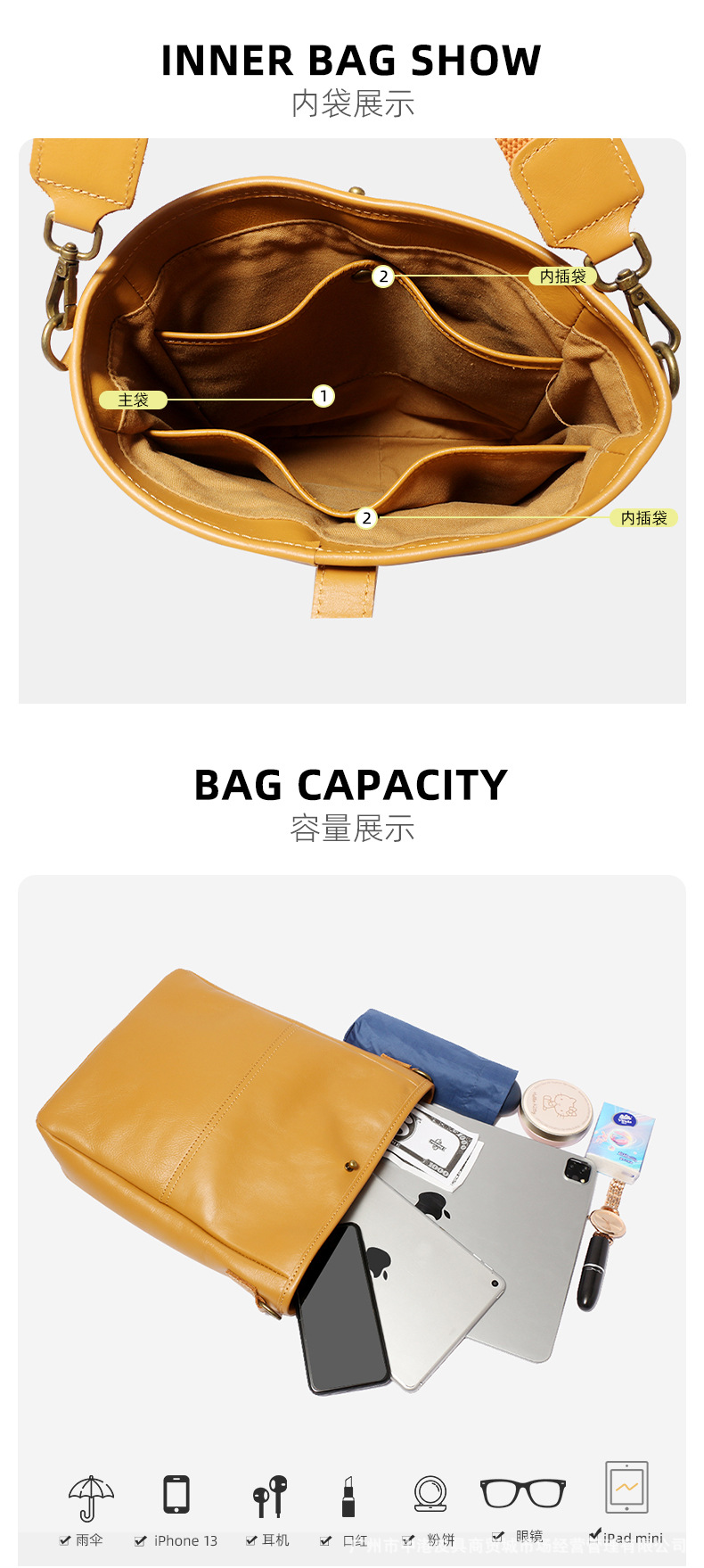 2022 new Korean version versatile casual fashion large-capacity small bucket one-shoulder cross-body top layer tree paste cowhide for women