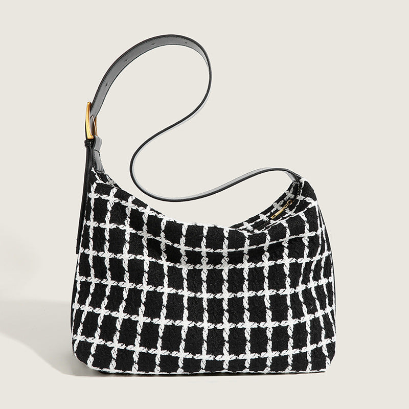 ins trendy 2023 new women's bag plaid canvas tote bag casual contrasting soft-sided armpit bag single shoulder crossbody bag
