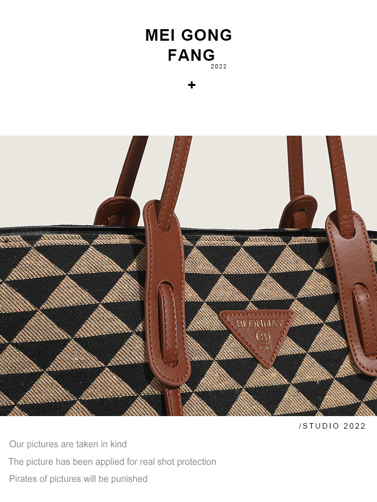 2023 New Women's Bags Large Capacity Triangular Plaid Tote Bag Fashion Contrast Color Armpit Bag Ladies Commuting Shoulder Bag