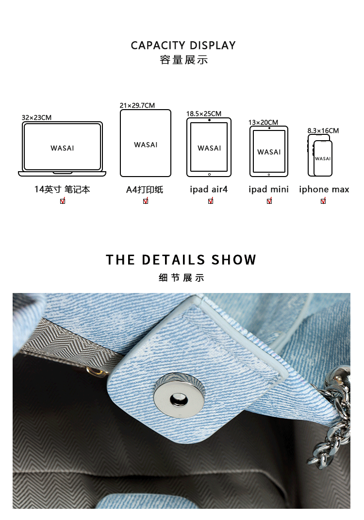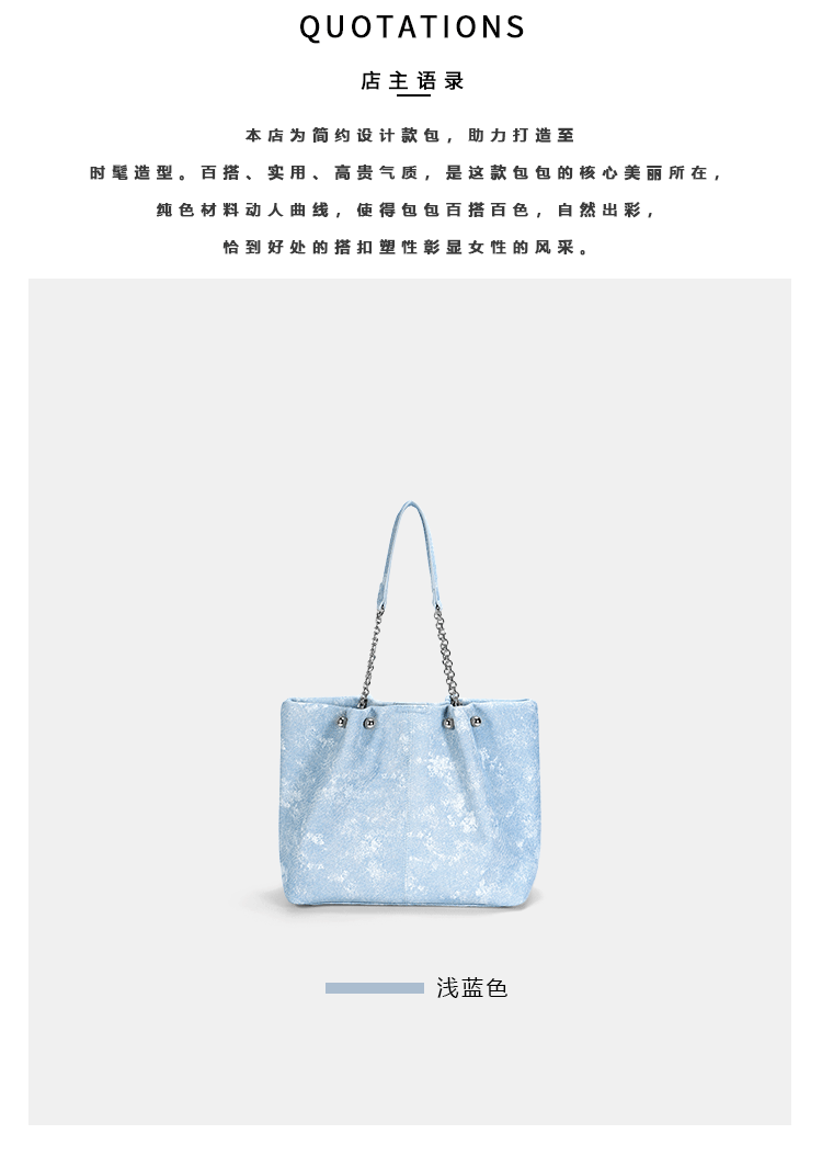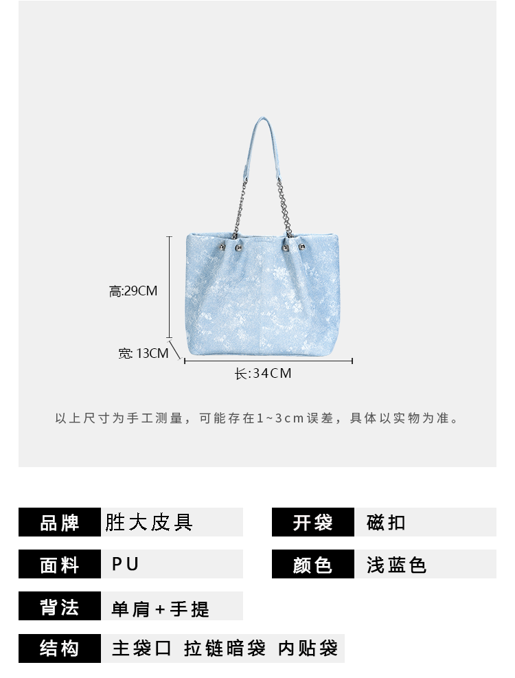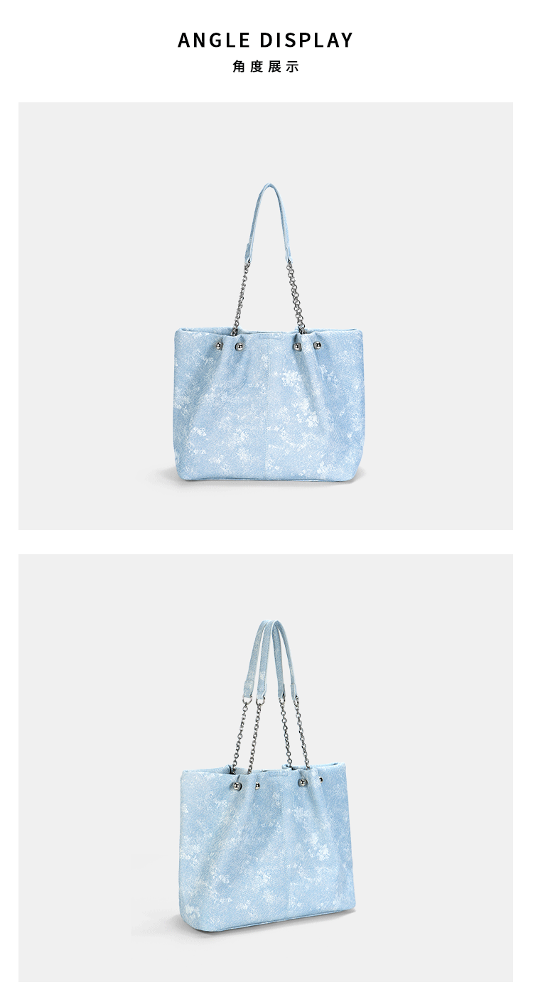 Women's bag 2023 new ink blue tote bag women's high-end large-capacity denim pattern chain shoulder handbag