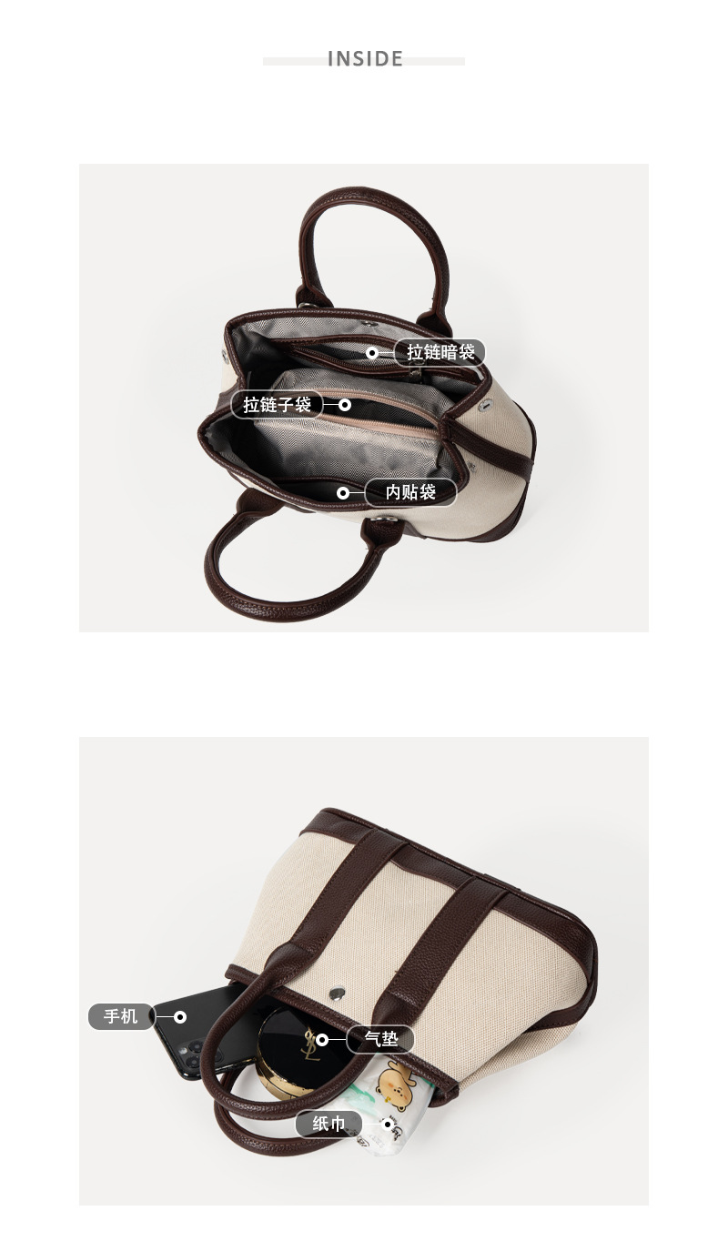 2023 Korean version of the new niche texture canvas splicing tote bag for women, versatile contrasting color large capacity single shoulder crossbody bag