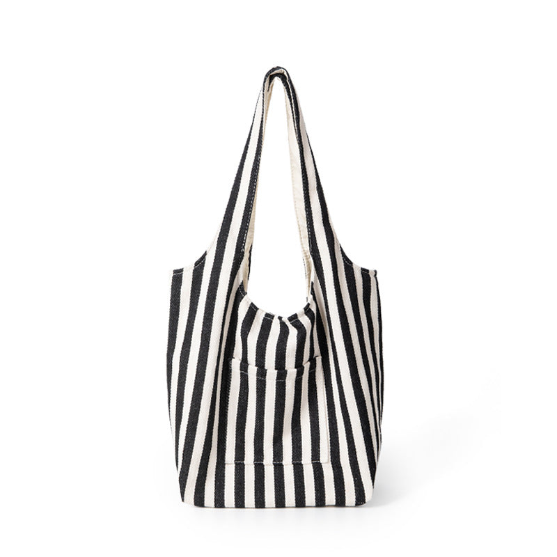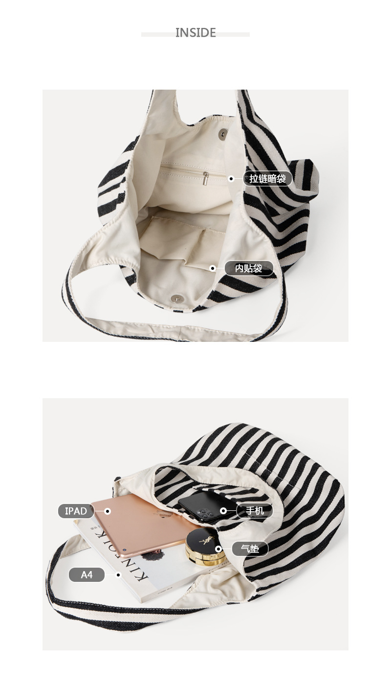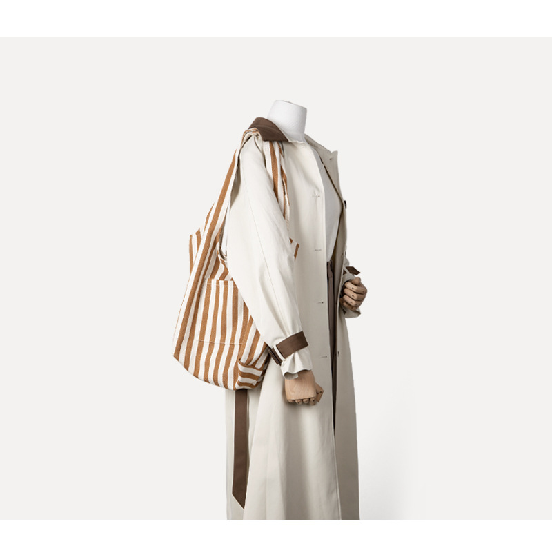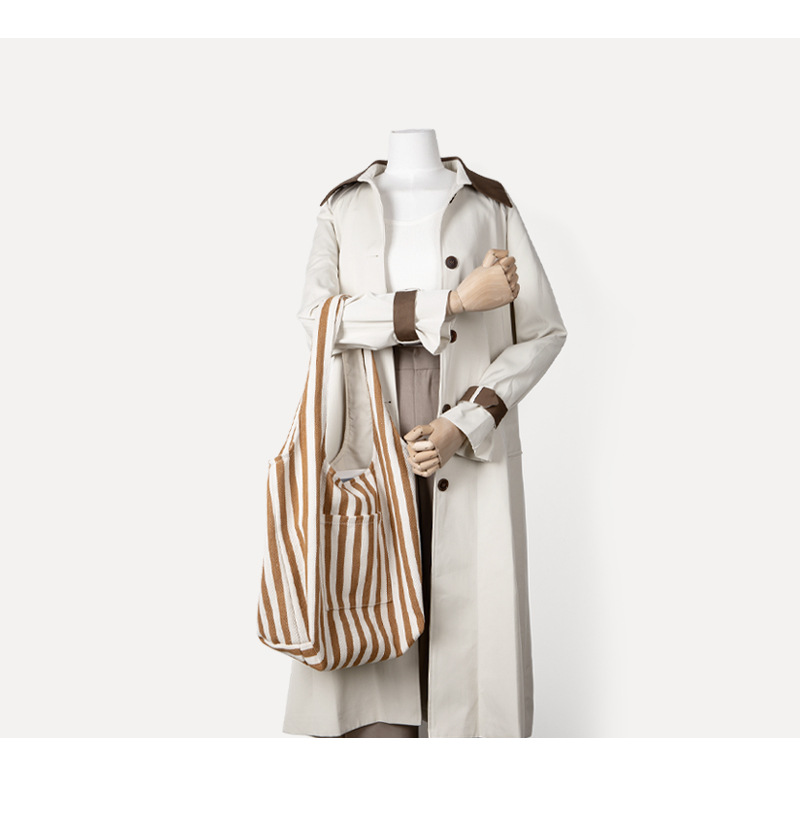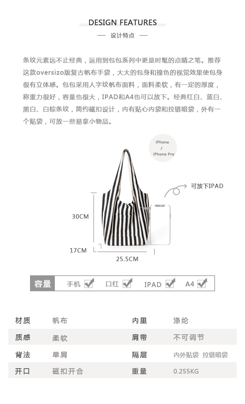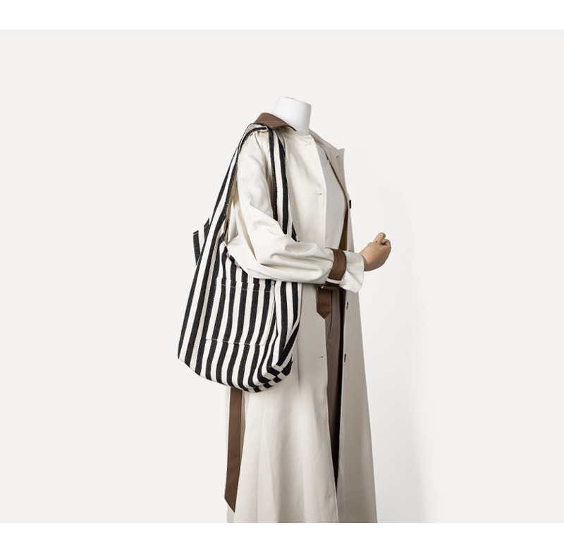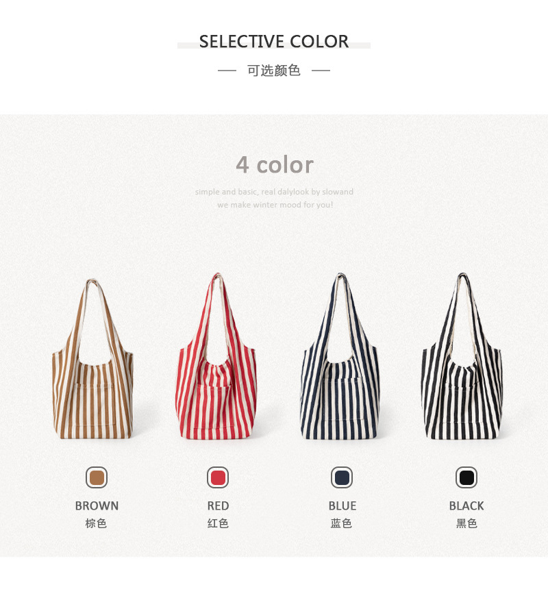 2022 new Japanese and Korean ins striped large-capacity canvas bag for women, college style niche design shoulder bag tote bag