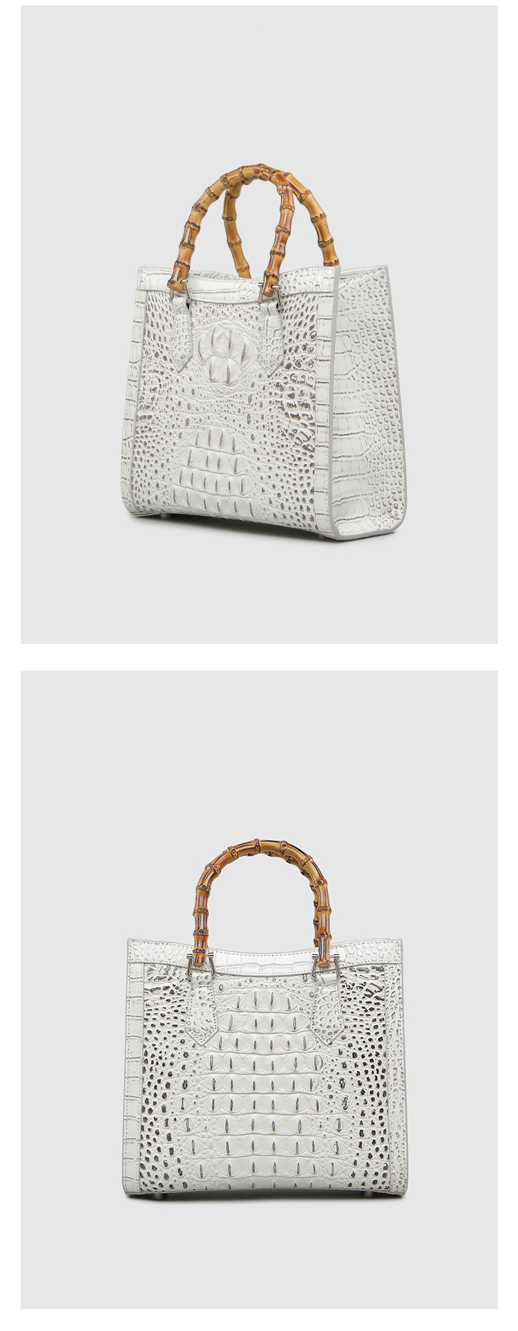 2023 New Foreign Trade Bags Women’s Genuine Leather Crocodile Bone Pattern Tote Bag Bamboo Handbag European and American Trend Crossbody Bag