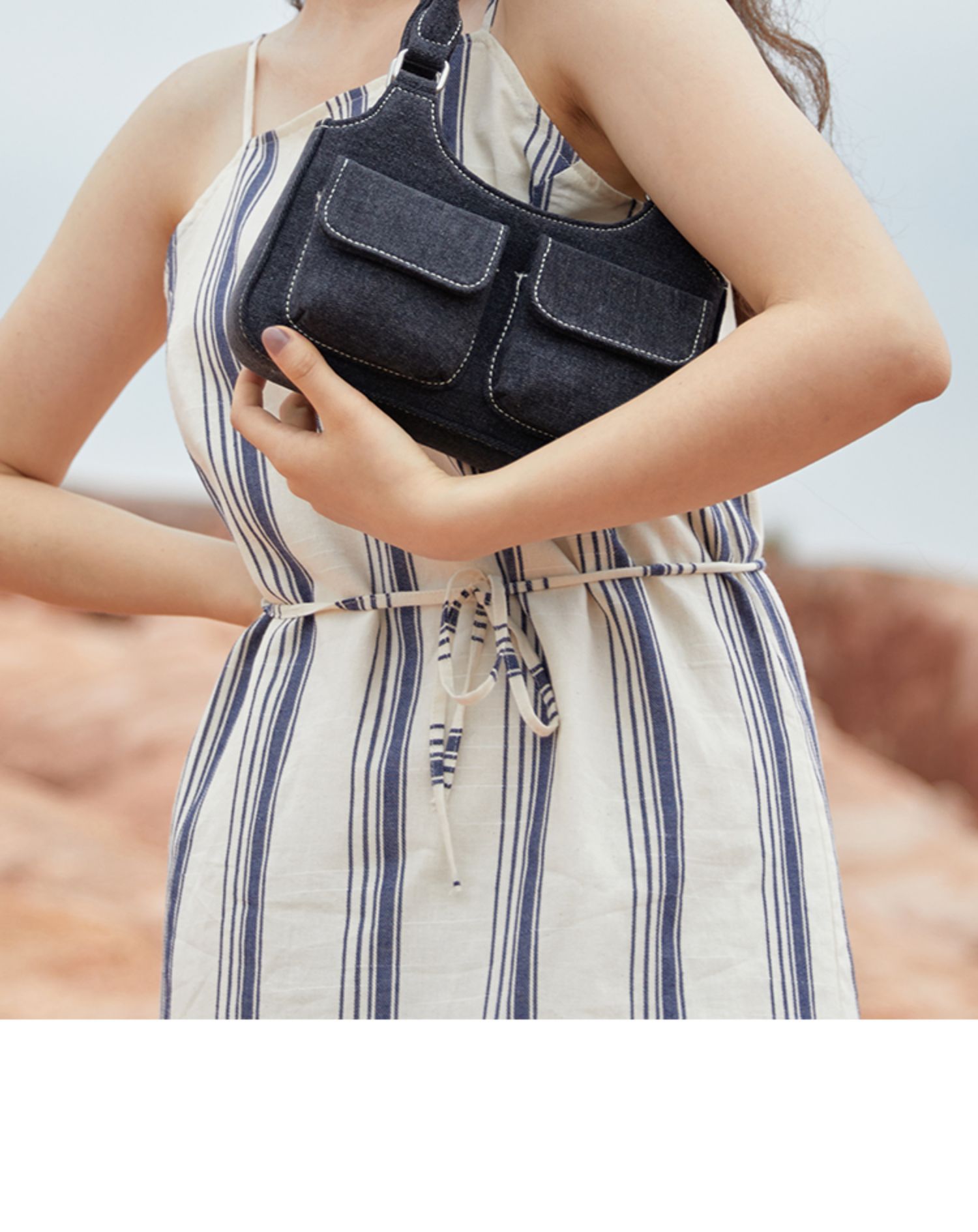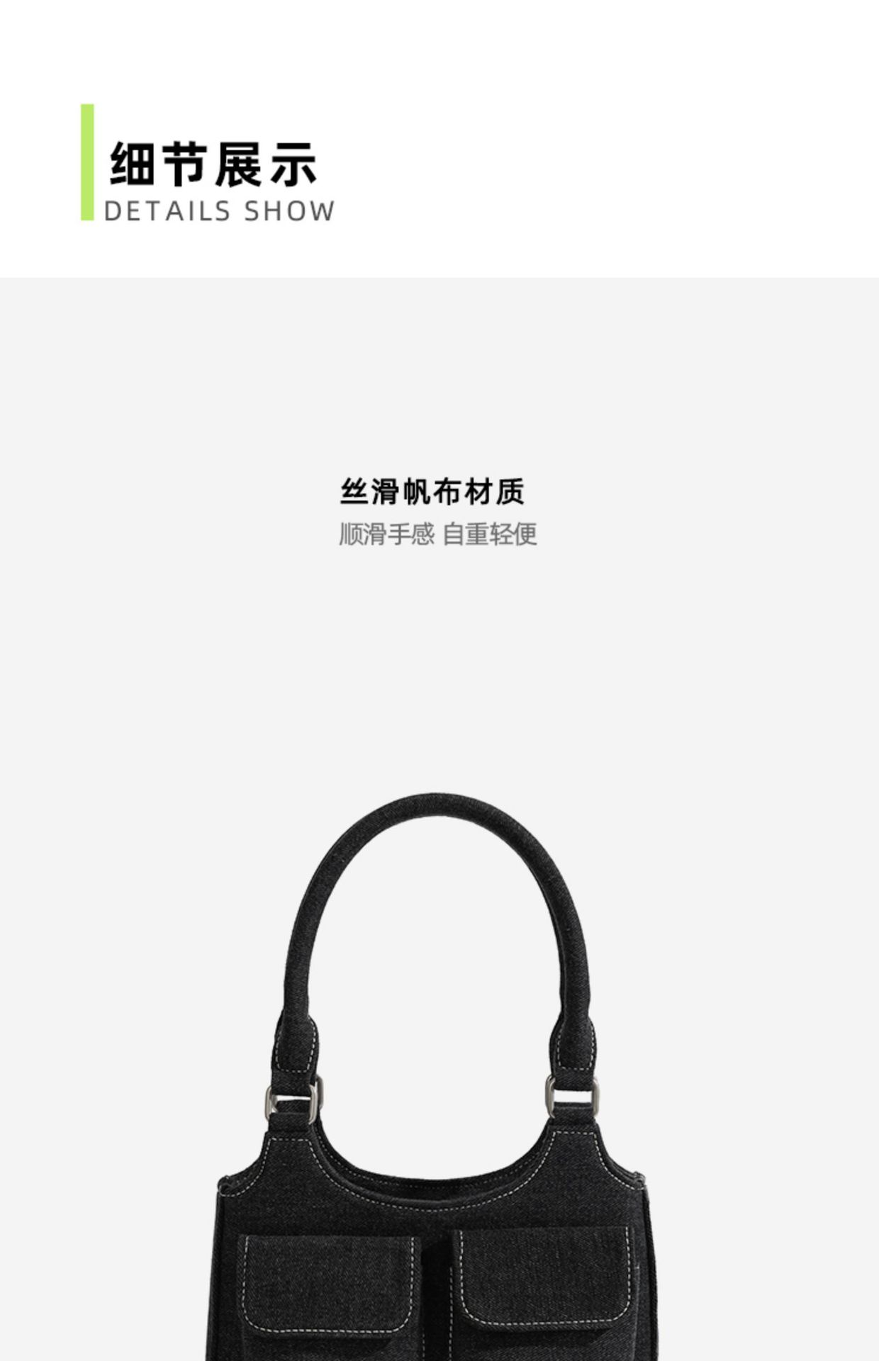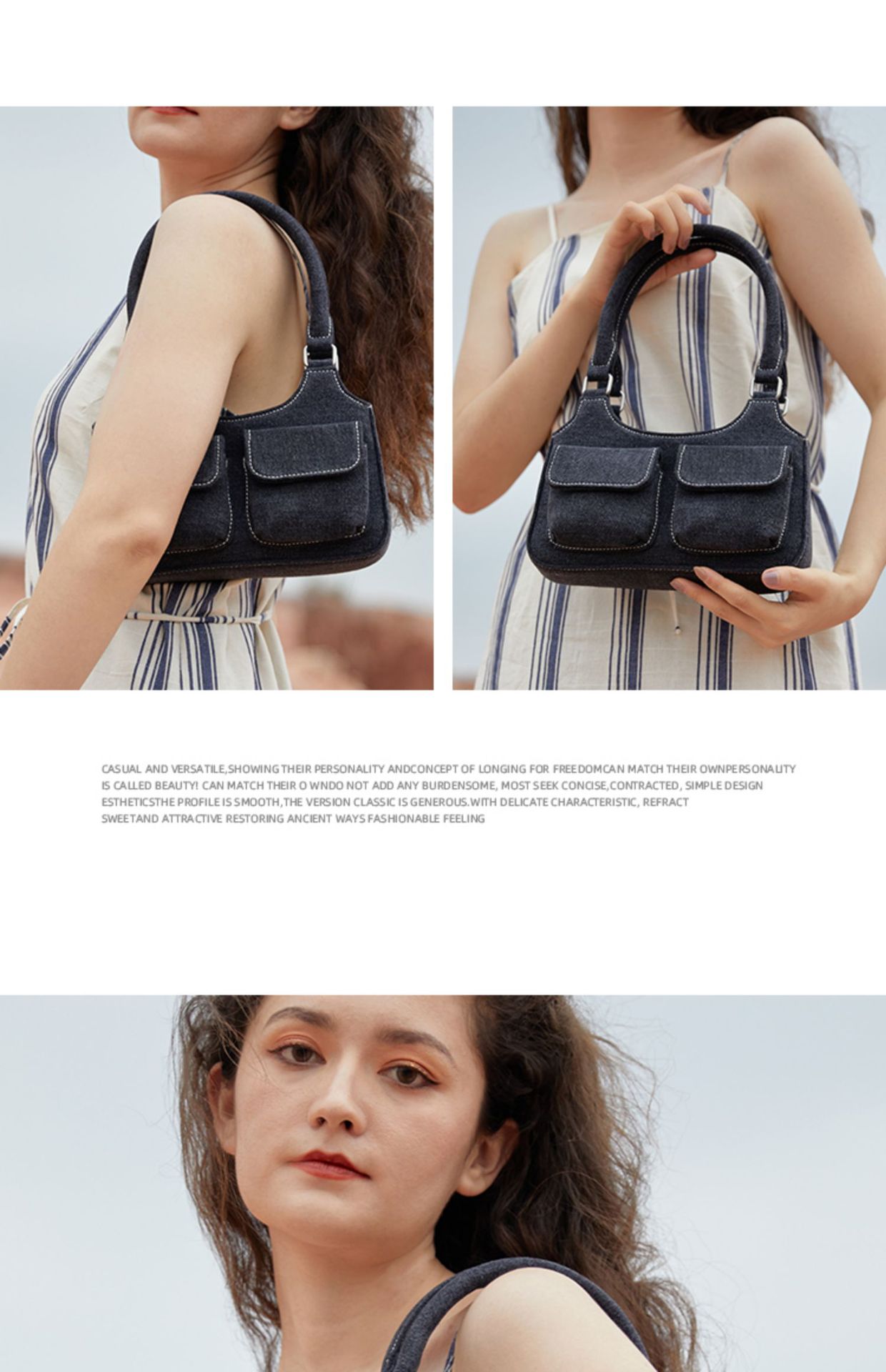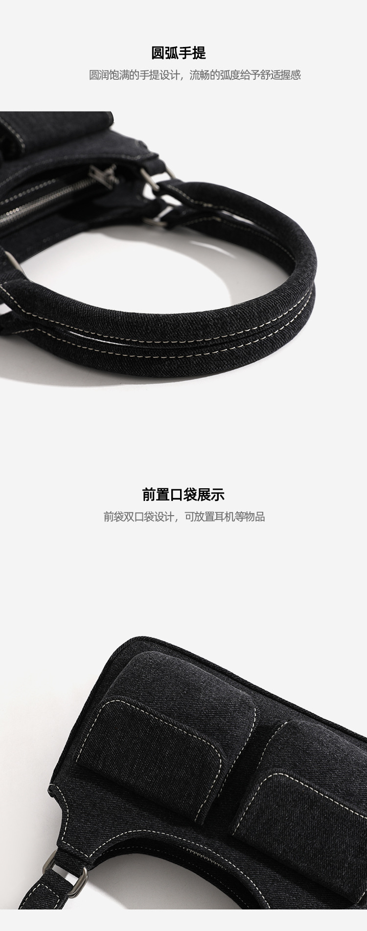 European and American niche bag college style hot girl double pocket dark denim blue small retro handbag single shoulder armpit bag