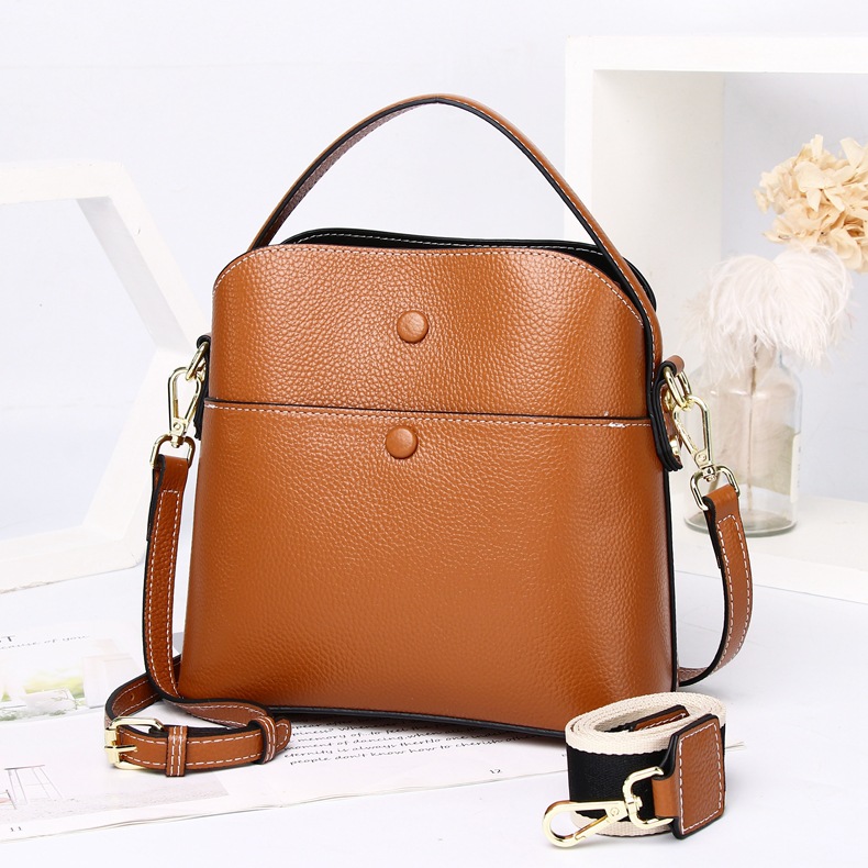 Bucket bag genuine leather women's bag large capacity new handbag bag casual versatile one-shoulder crossbody bag women's versatile 6098