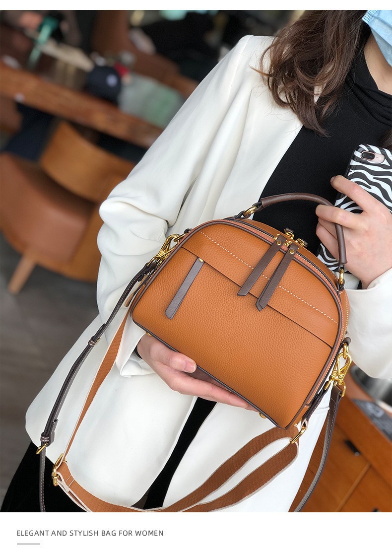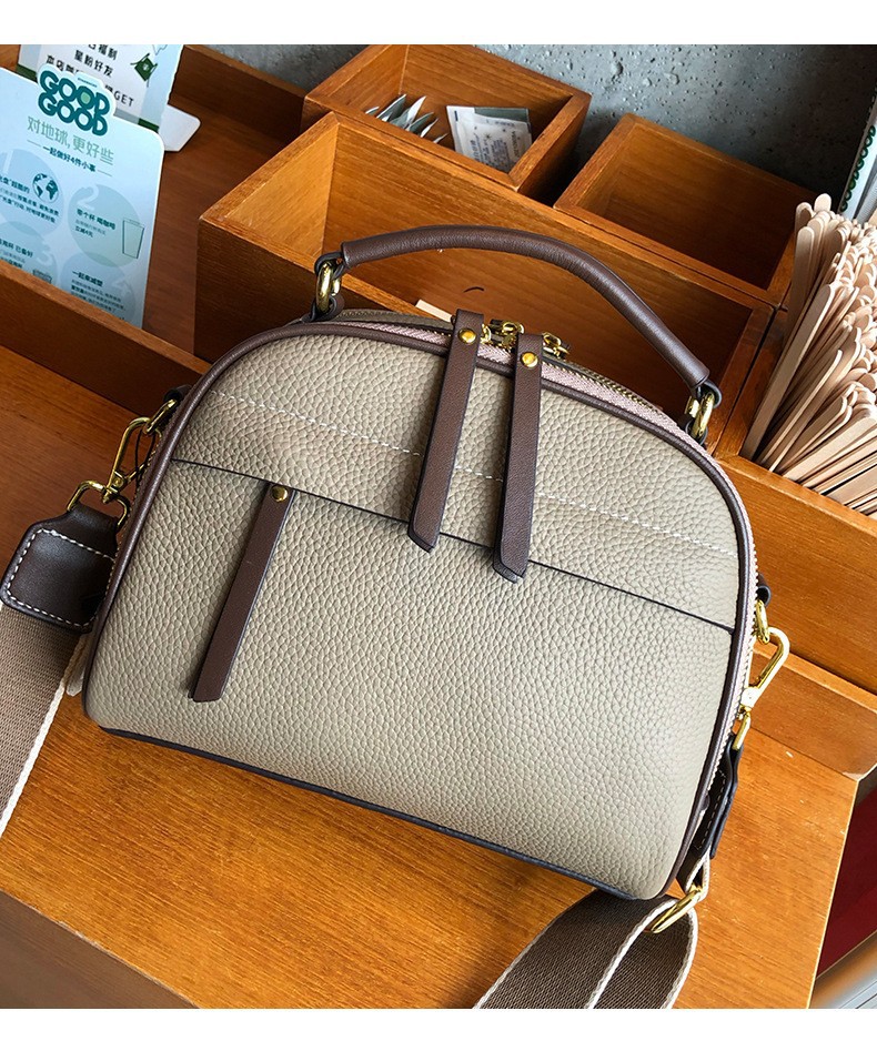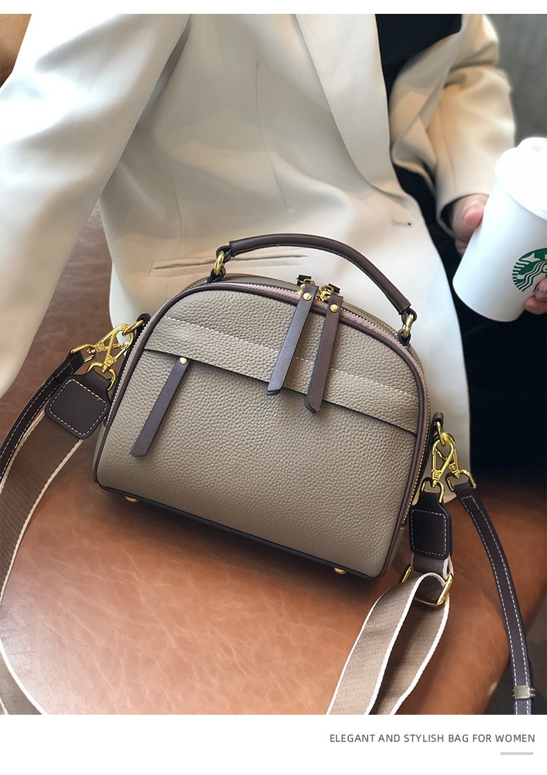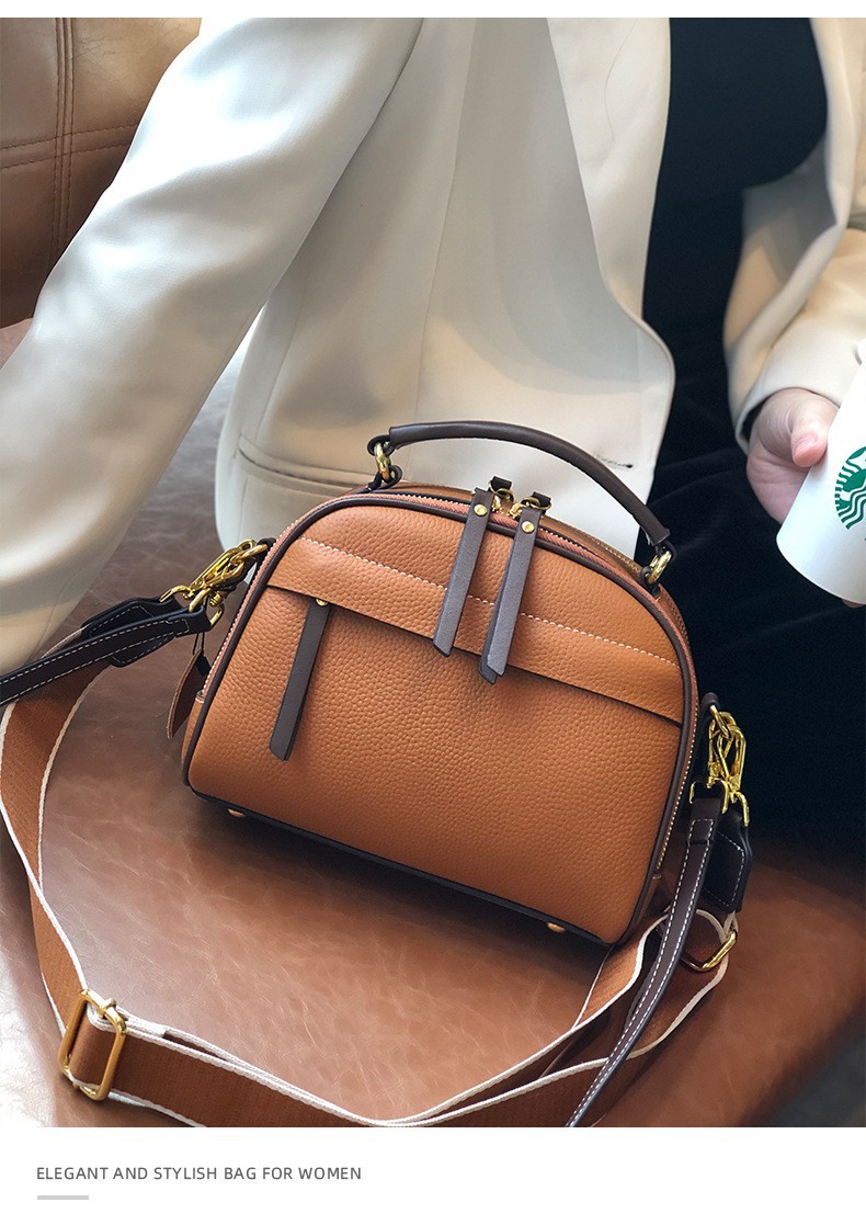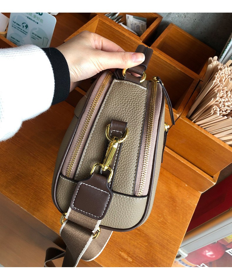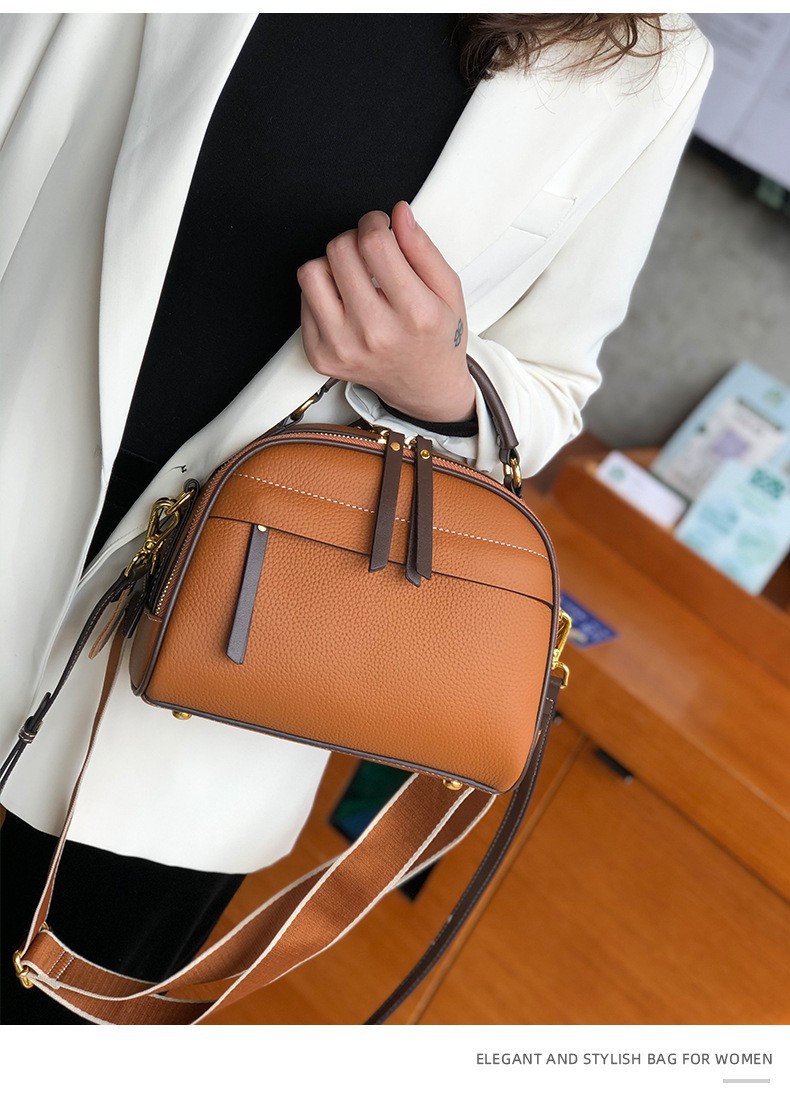 2022 new autumn and winter first-layer cowhide niche single-shoulder small square bag fashionable wide shoulder strap casual portable crossbody bag for women