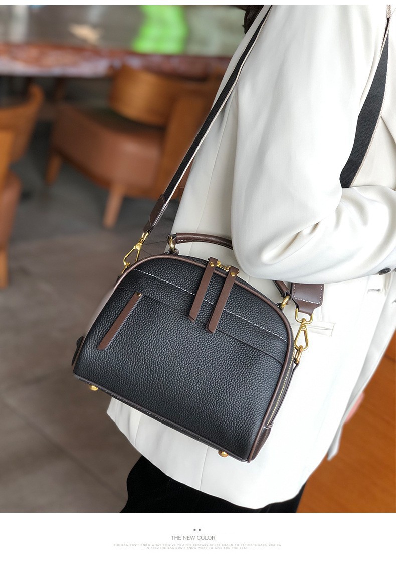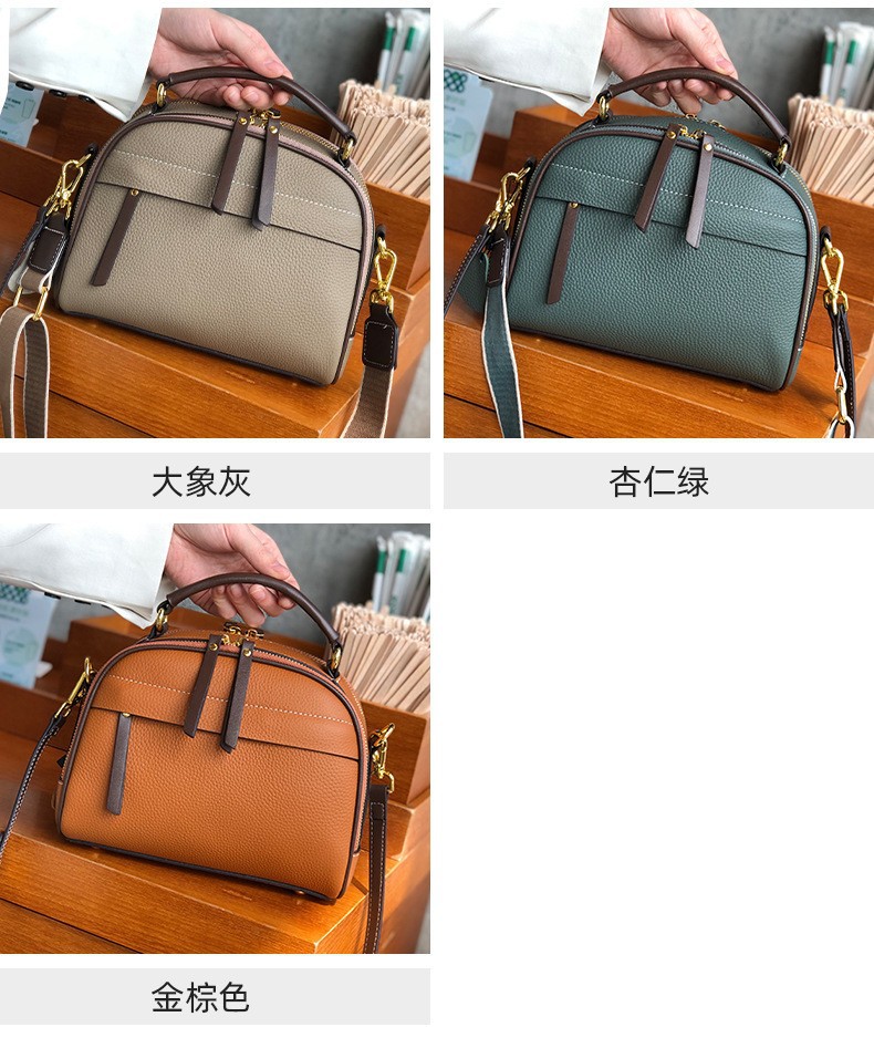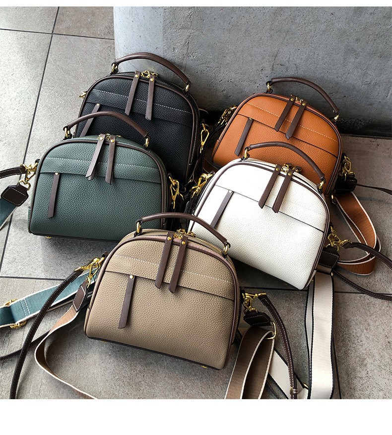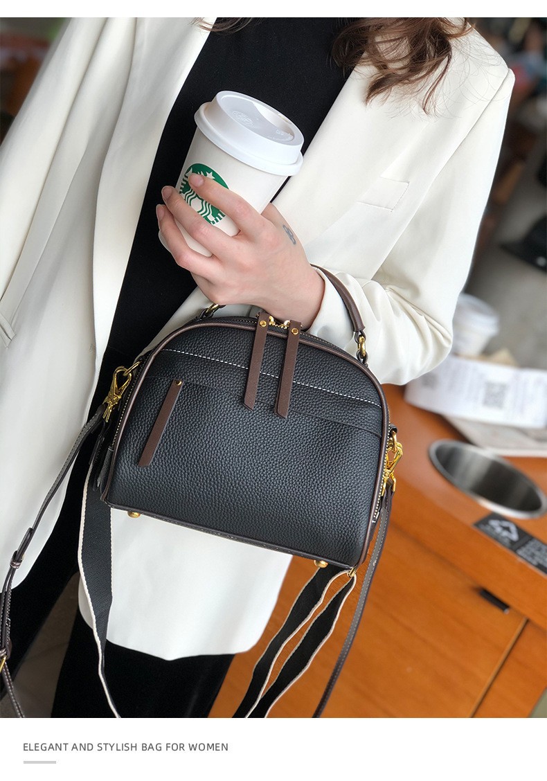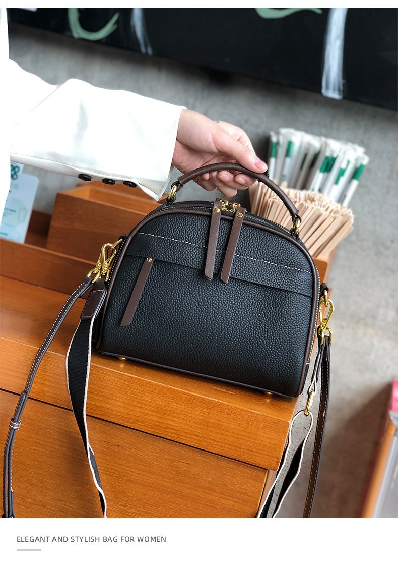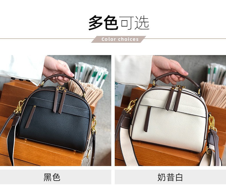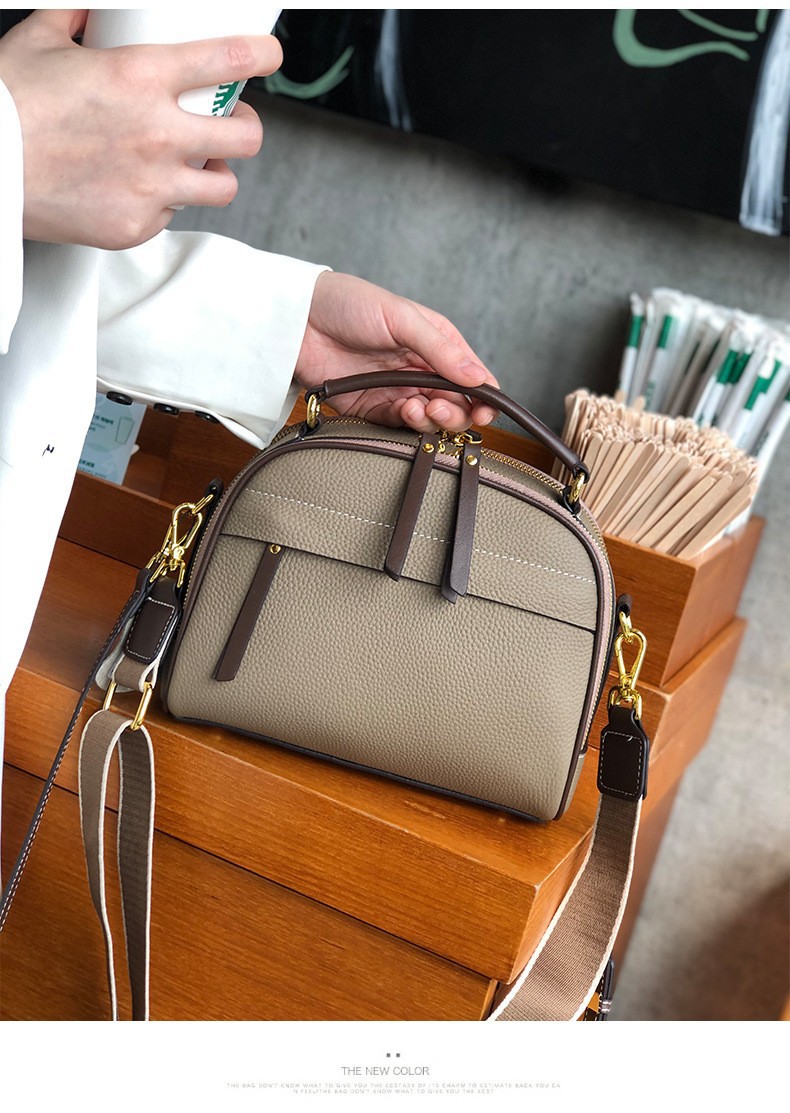 2022 new autumn and winter first-layer cowhide niche single-shoulder small square bag fashionable wide shoulder strap casual portable crossbody bag for women