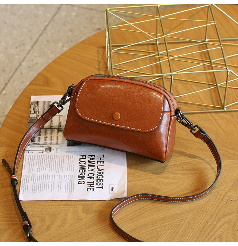 Genuine leather women's bag 2022 autumn and winter new fashion versatile small square bag temperament simple waxed cowhide shoulder crossbody bag