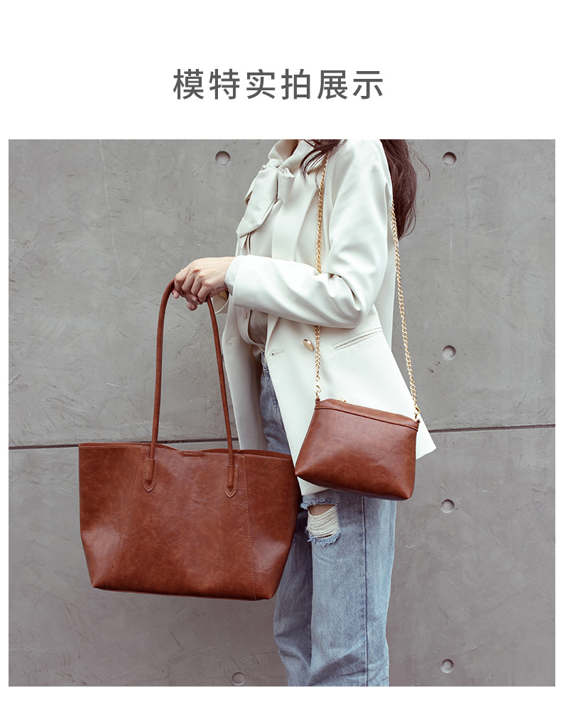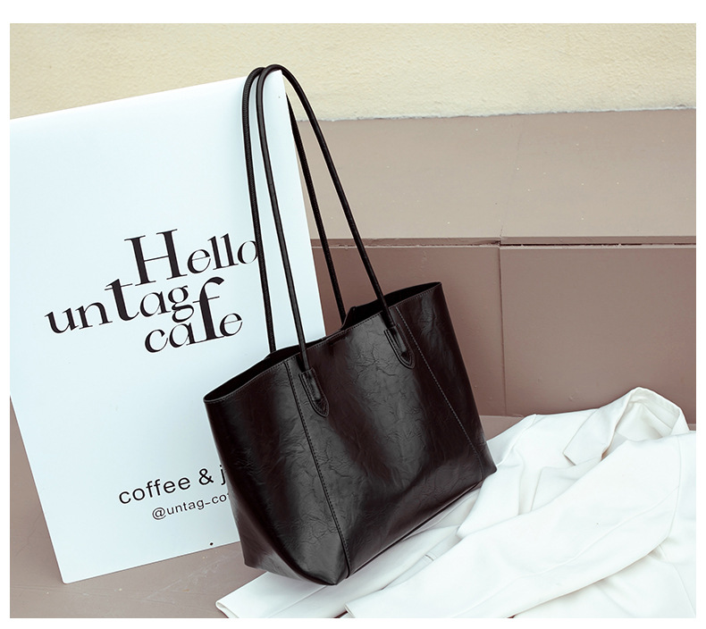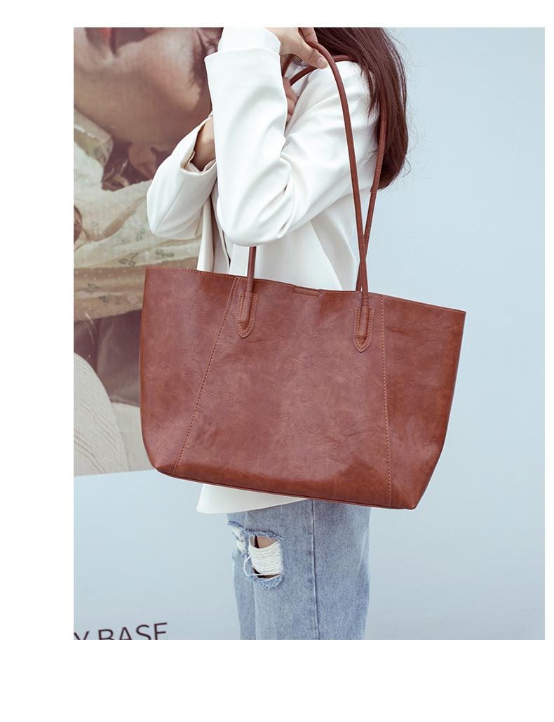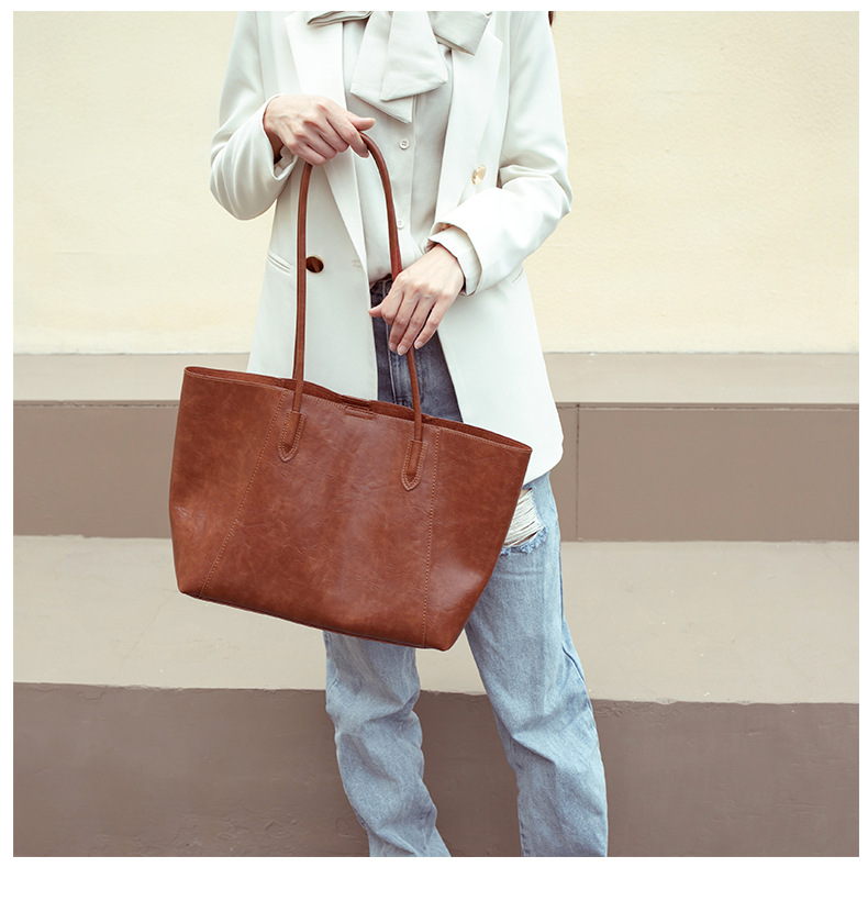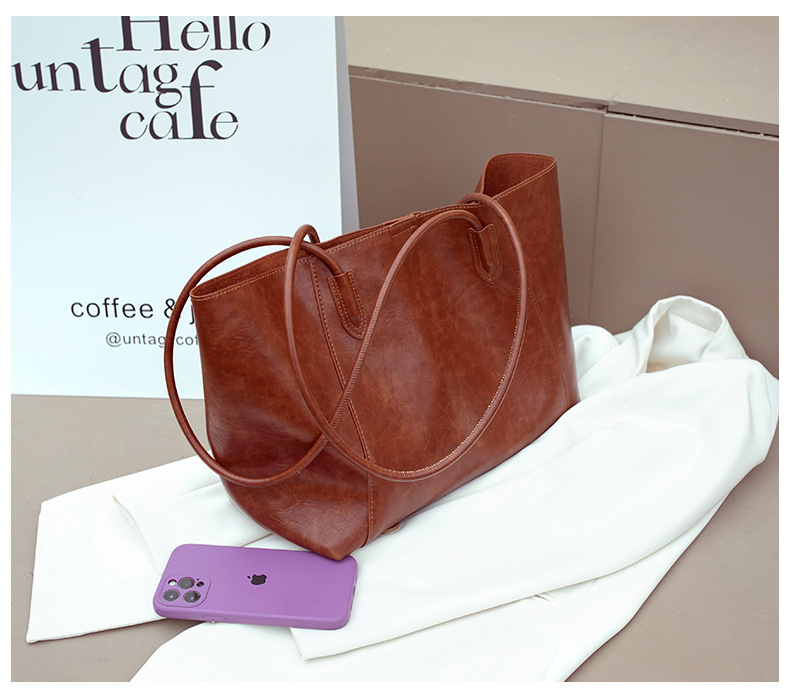 Tote bag 2023 new European and American fashion mother-in-law bag oil wax leather women's handbag large capacity retro shoulder bag