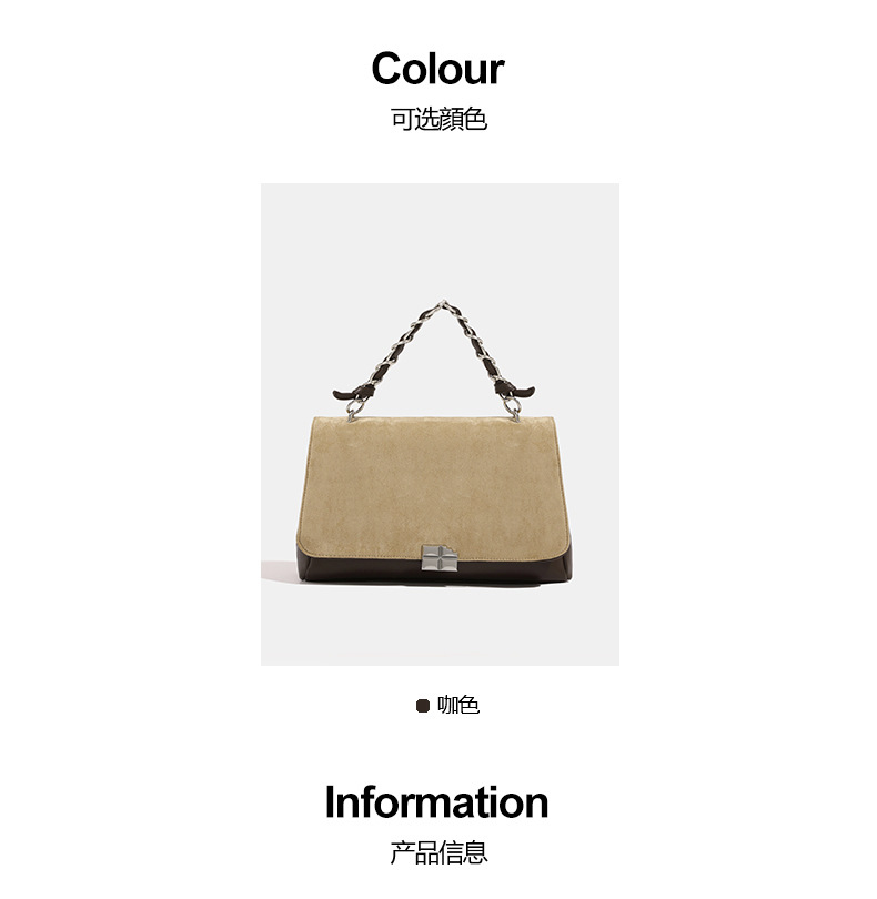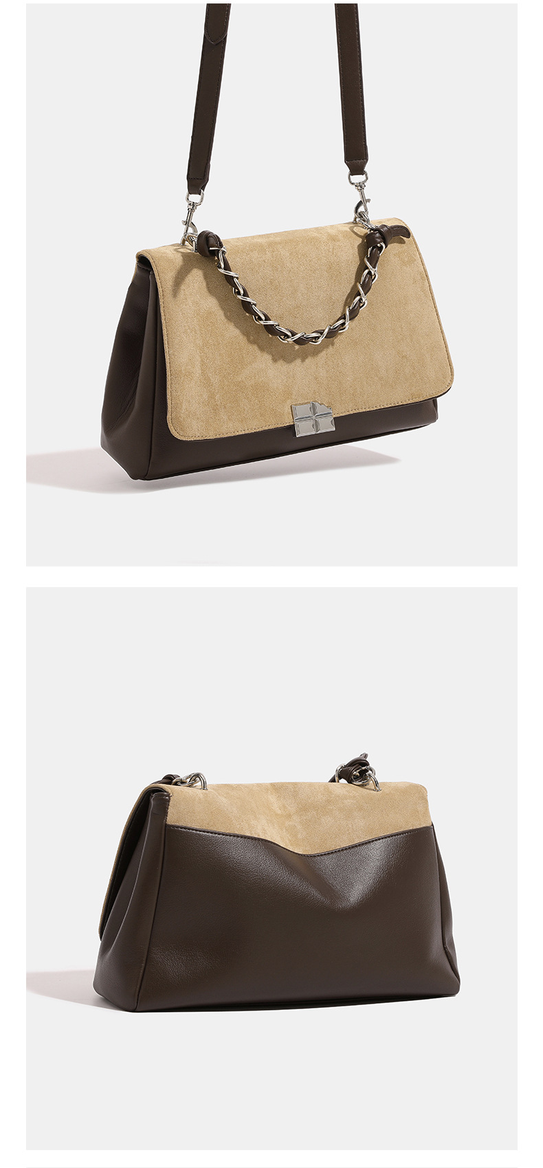 High-end chain bag, niche design, contrasting color handheld tote bag, women's shoulder commuter bag, large-capacity crossbody bag