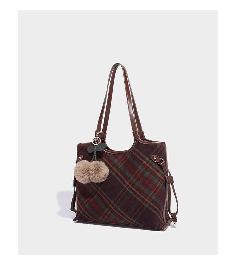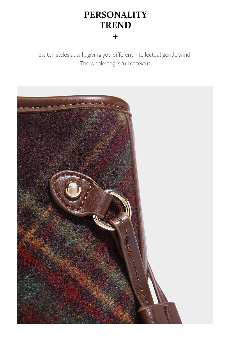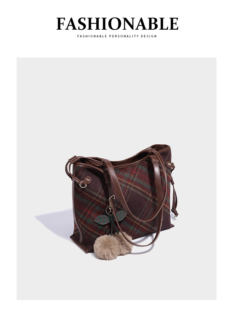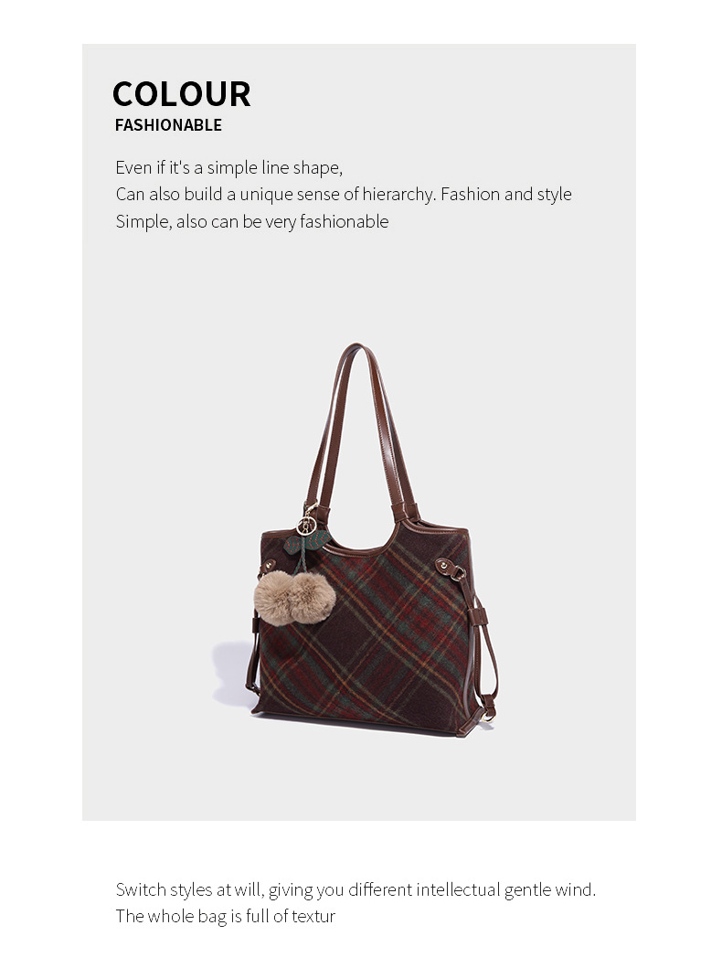 Women's bag colorful plaid tote bag retro plaid bag 2023 new autumn and winter large-capacity portable shoulder bag